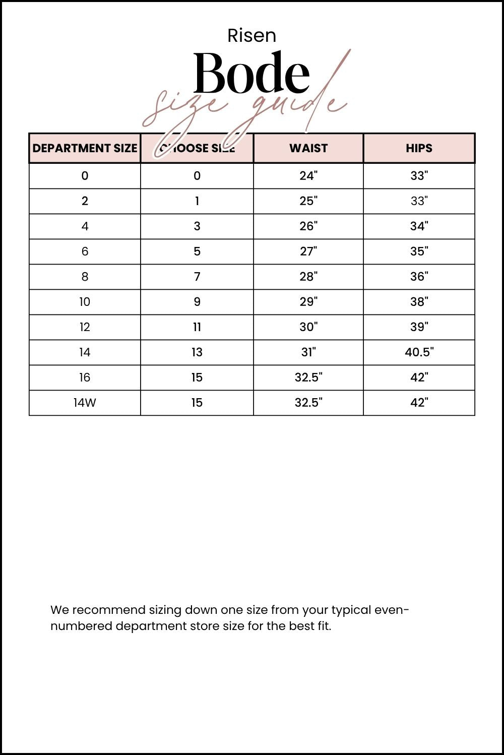 We recommend sizing down one size from your typical even-numbered department store size for the best fit.