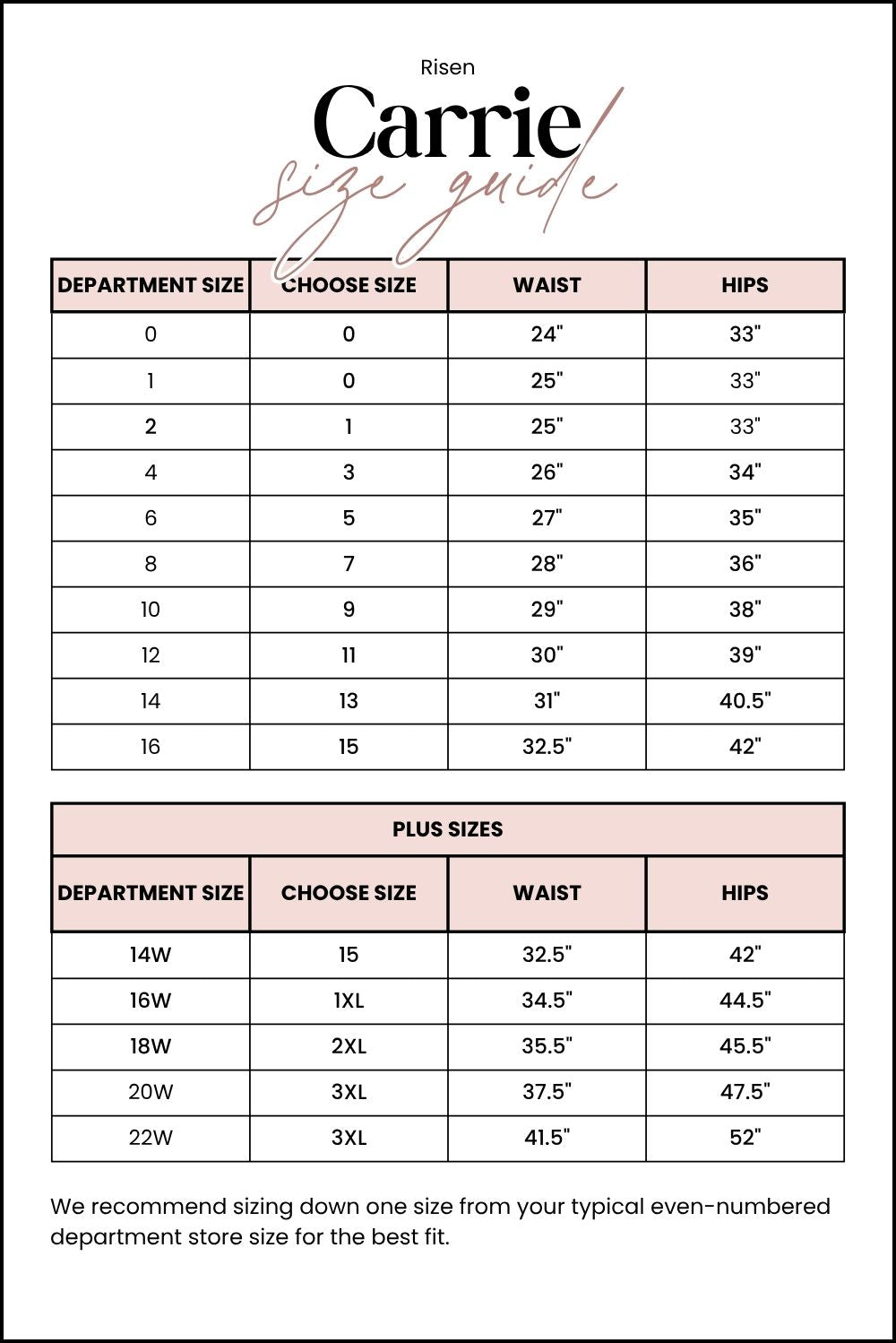 - Rise (Sizes 0-15): 10 inches