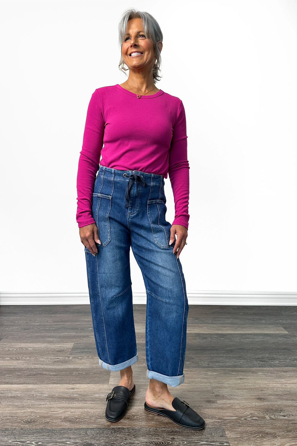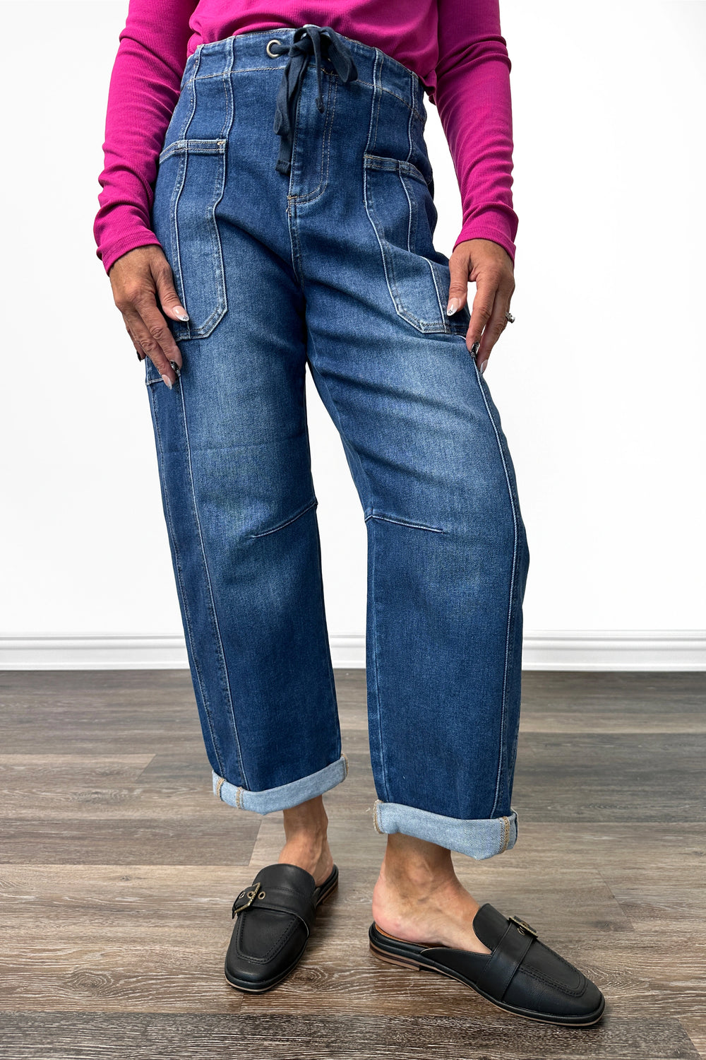 The Dixon from Risen: High-Rise Barrel-Cargo Crop Wide Leg Dark Wash Denim *Final Sale*