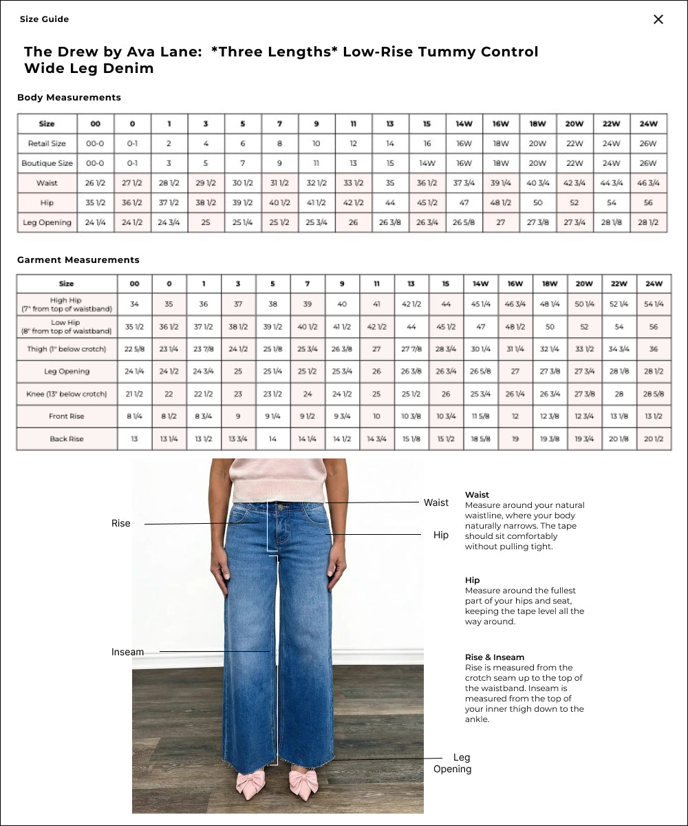 The Drew by Ava Lane: *Three Lengths* Low-Rise Tummy Control Wide Leg Denim