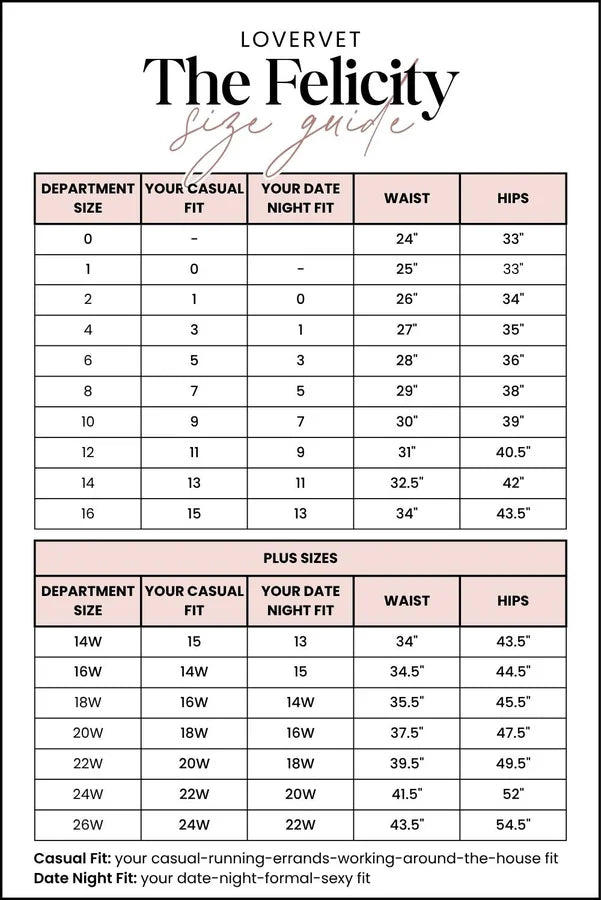 - Rise (Sizes 14W-24W): 11.5 inches