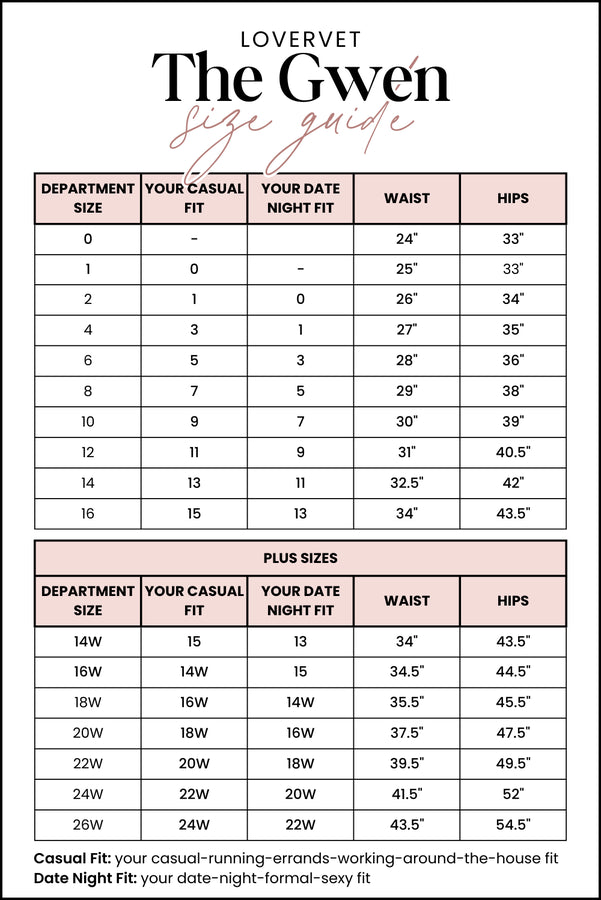 - Rise (Sizes 14W-24W): 12.5 inches