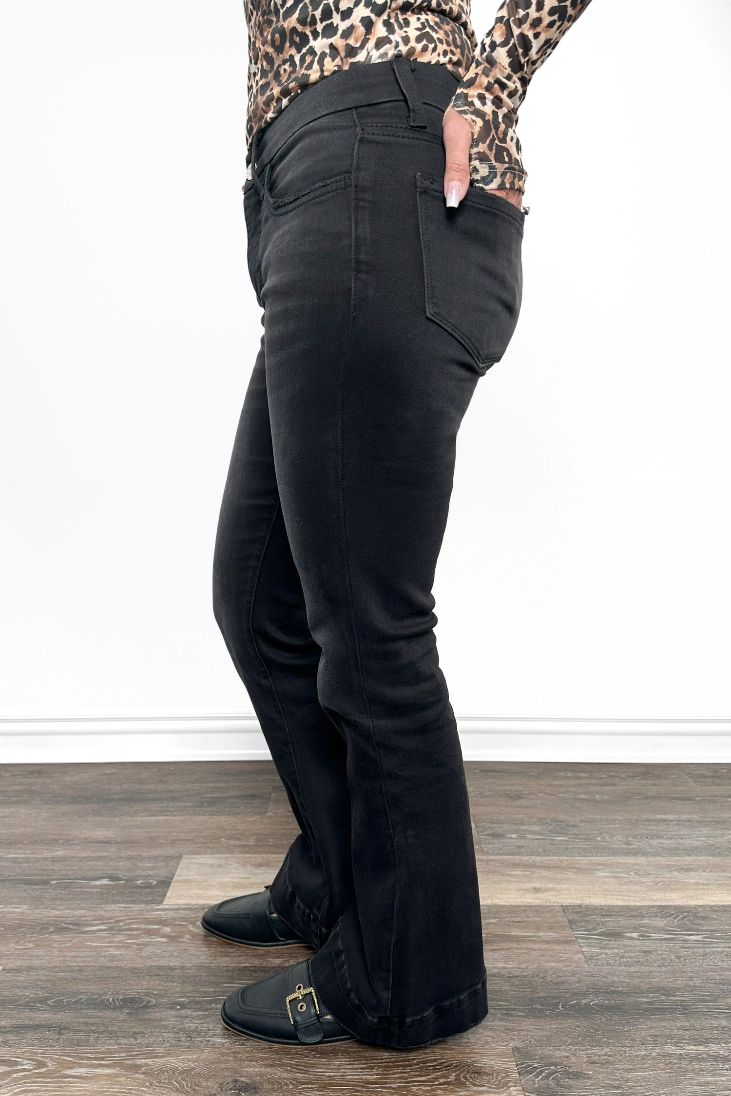 The Gwen from Lovervet *Three Length* Mid-Rise Tummy Control Flare Black Denim