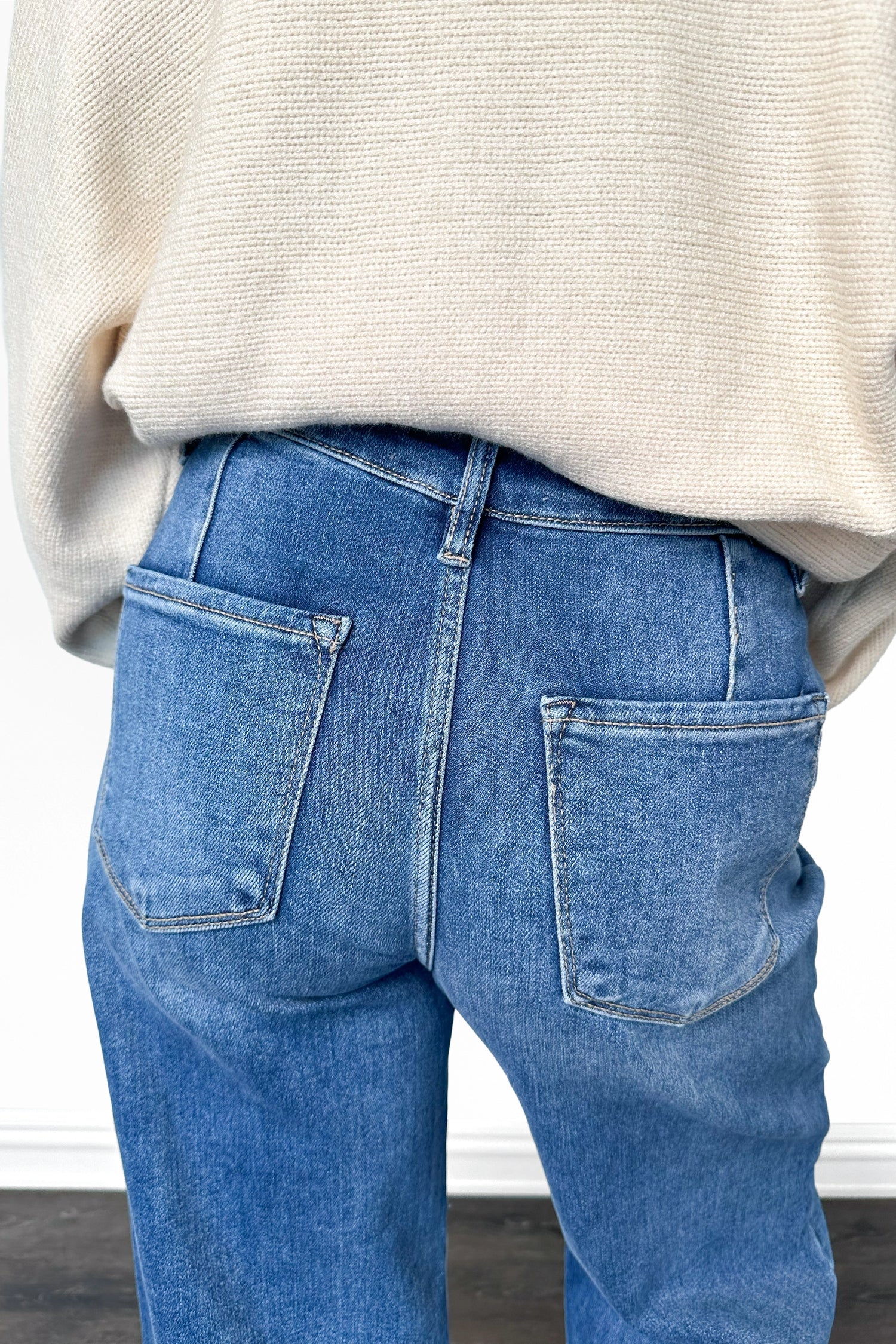 - Wash: Medium wash with subtle whiskering adding dimension without looking overly faded.