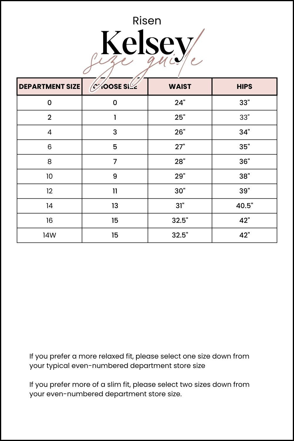 If you prefer a more relaxed fit, please select one size down from your typical even-numbered department store size
