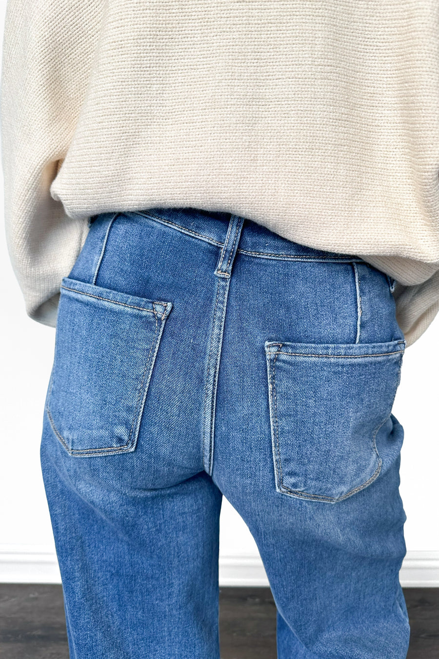 - Wash: Medium wash with subtle whiskering adding dimension without looking overly faded.
