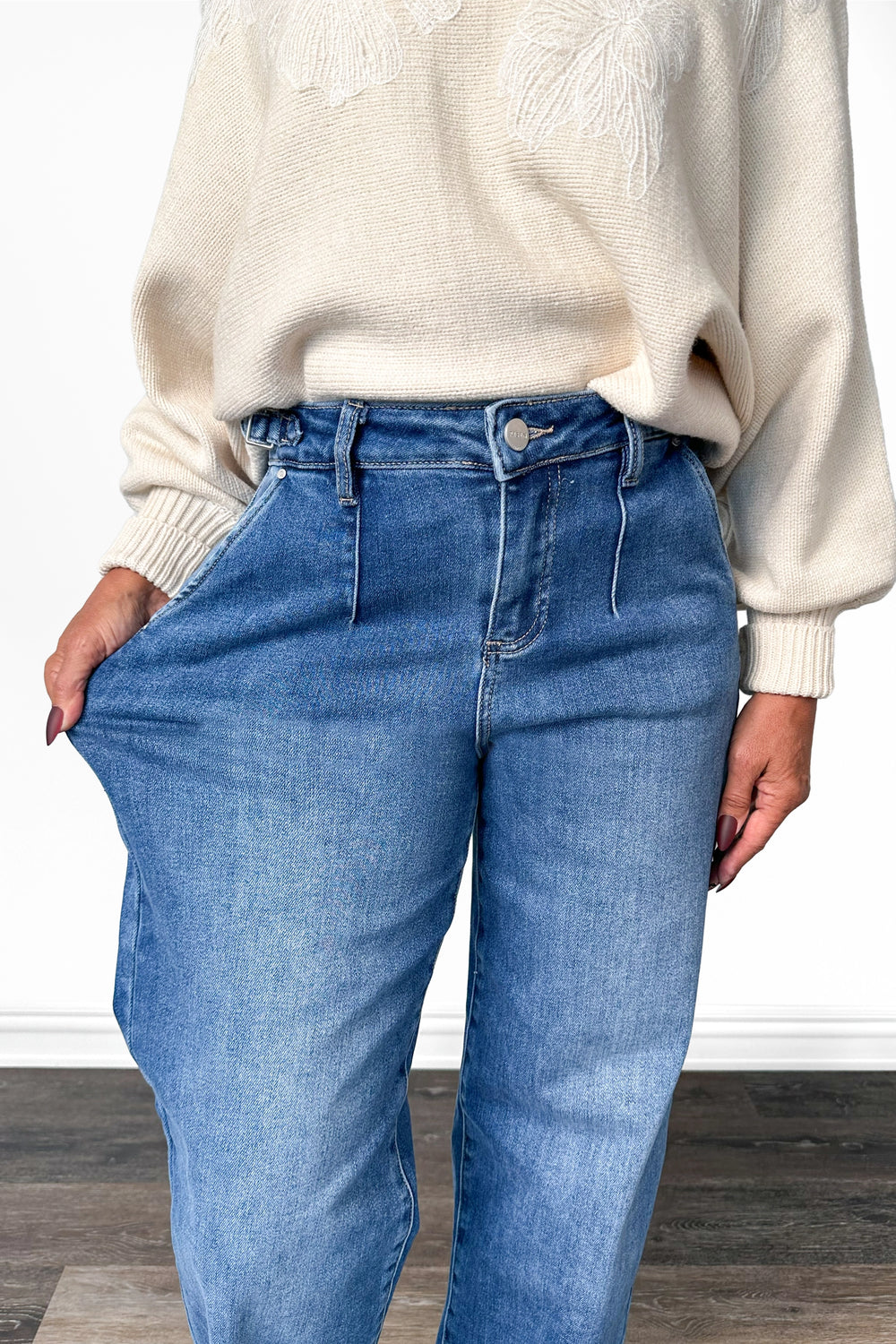 The Kelsey from Risen: High-Rise Pleated Slouchy Wide Leg Denim