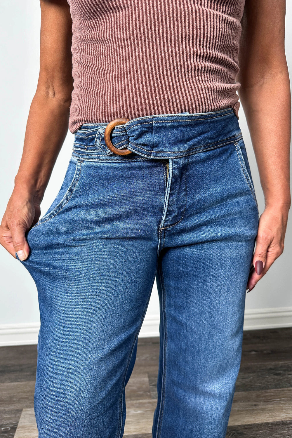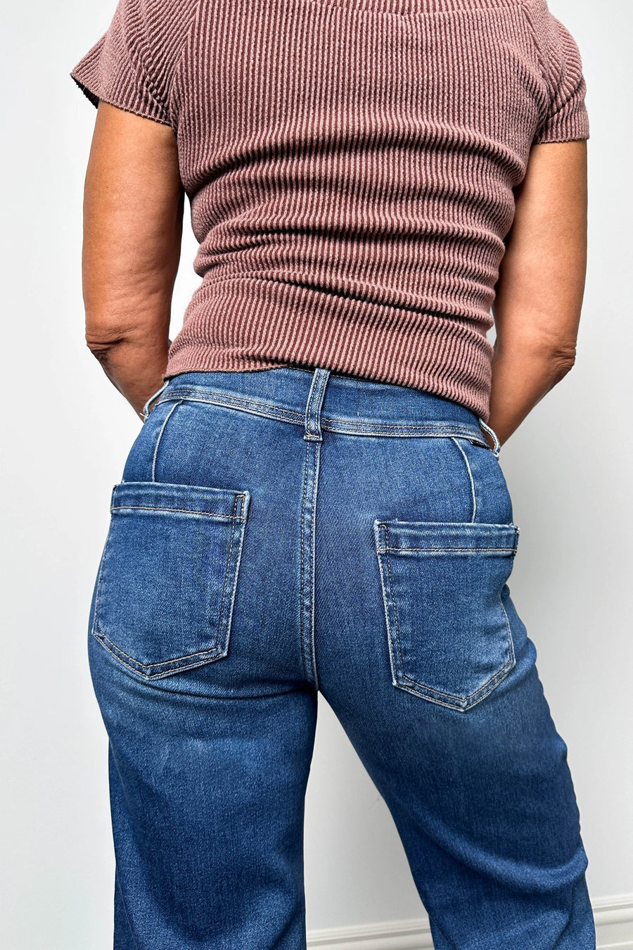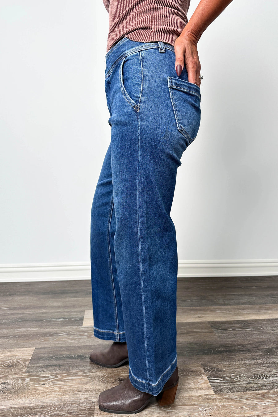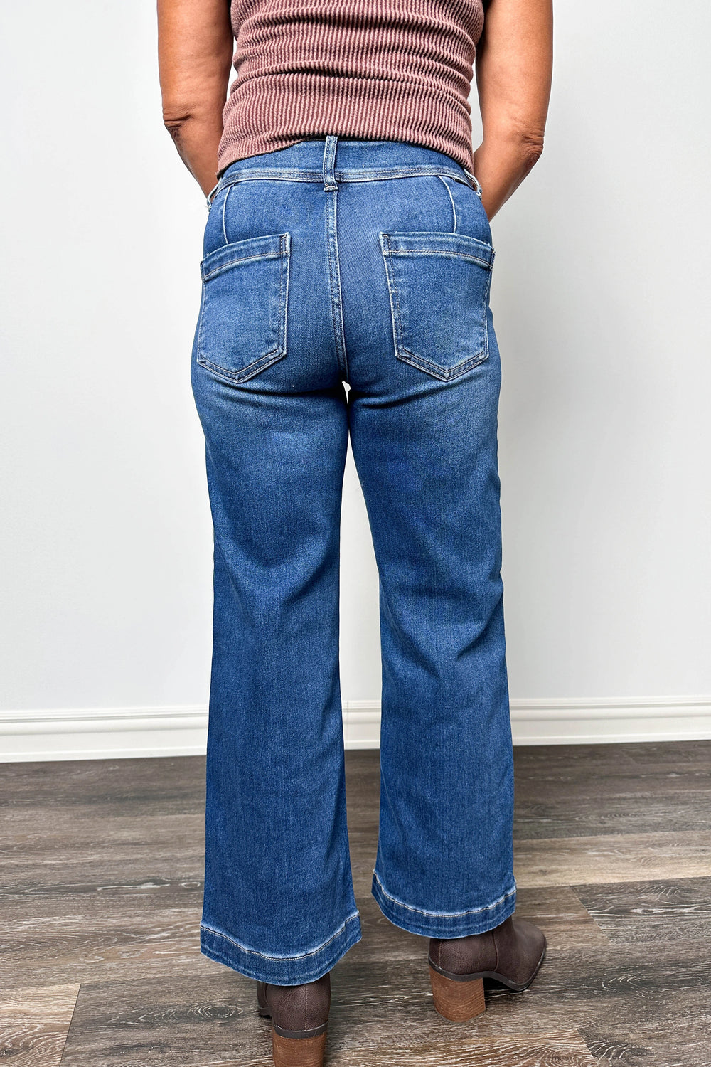 The Lauren from Risen: High-Rise Tummy Control Extended Front Wide Leg Denim *Final Sale*