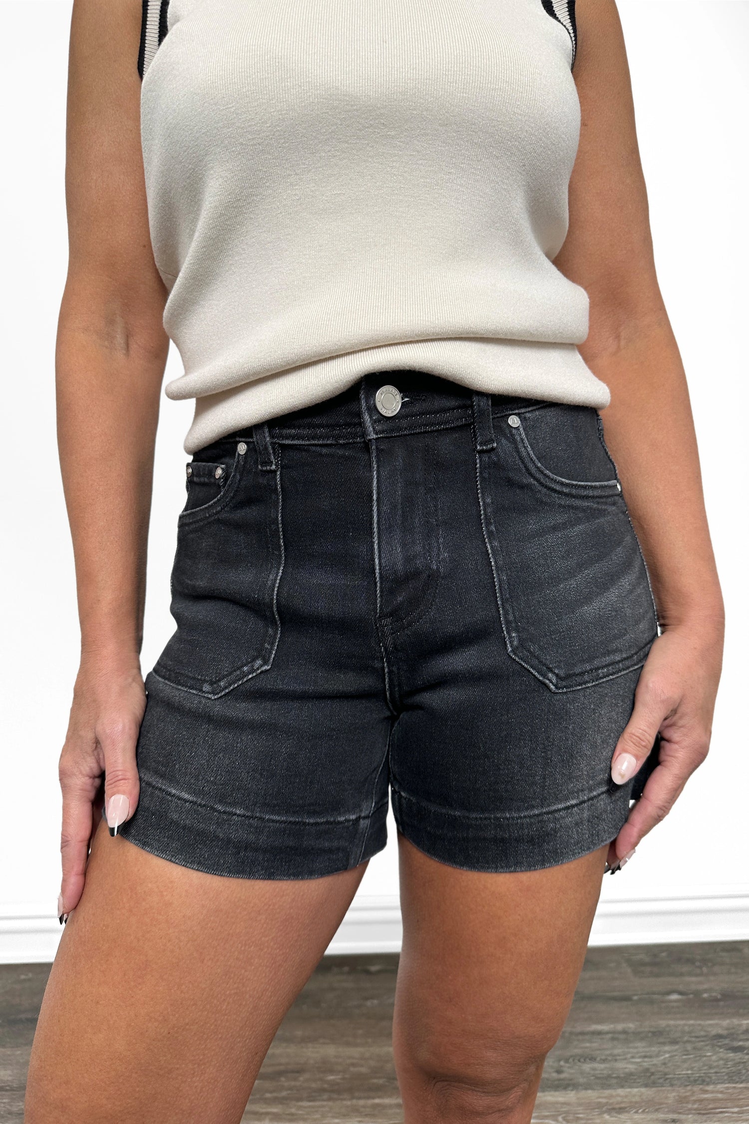 The Lexie by Ava Lane: Mid-Rise Black Denim Shorts