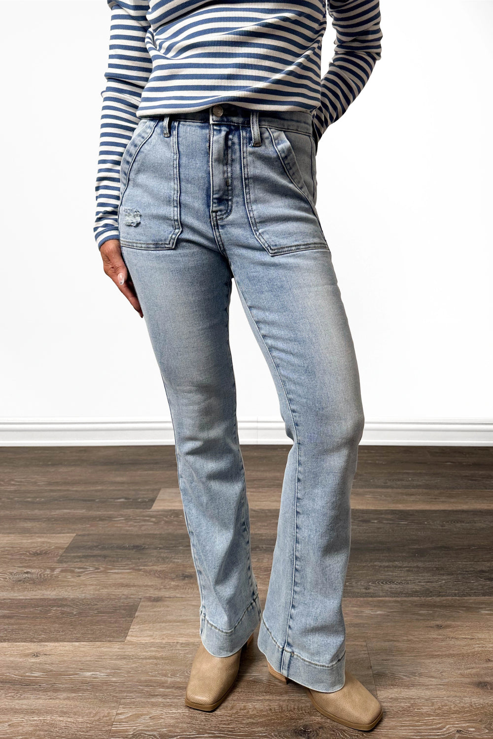 The Margot from Saige: High-Rise Tummy Control Bootcut Denim