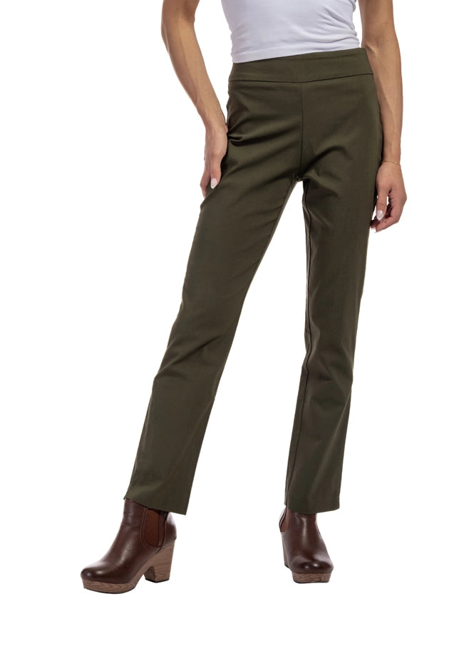 The High-Rise Pants by Pine Apparel are the pull on pants we all need. These high rise pants feature a straight cut with an elastic, stretch waistband. They include 2 back welt pockets, and side vents. The Most Amazing Pants Ever can be dressed up or down for any occasion.