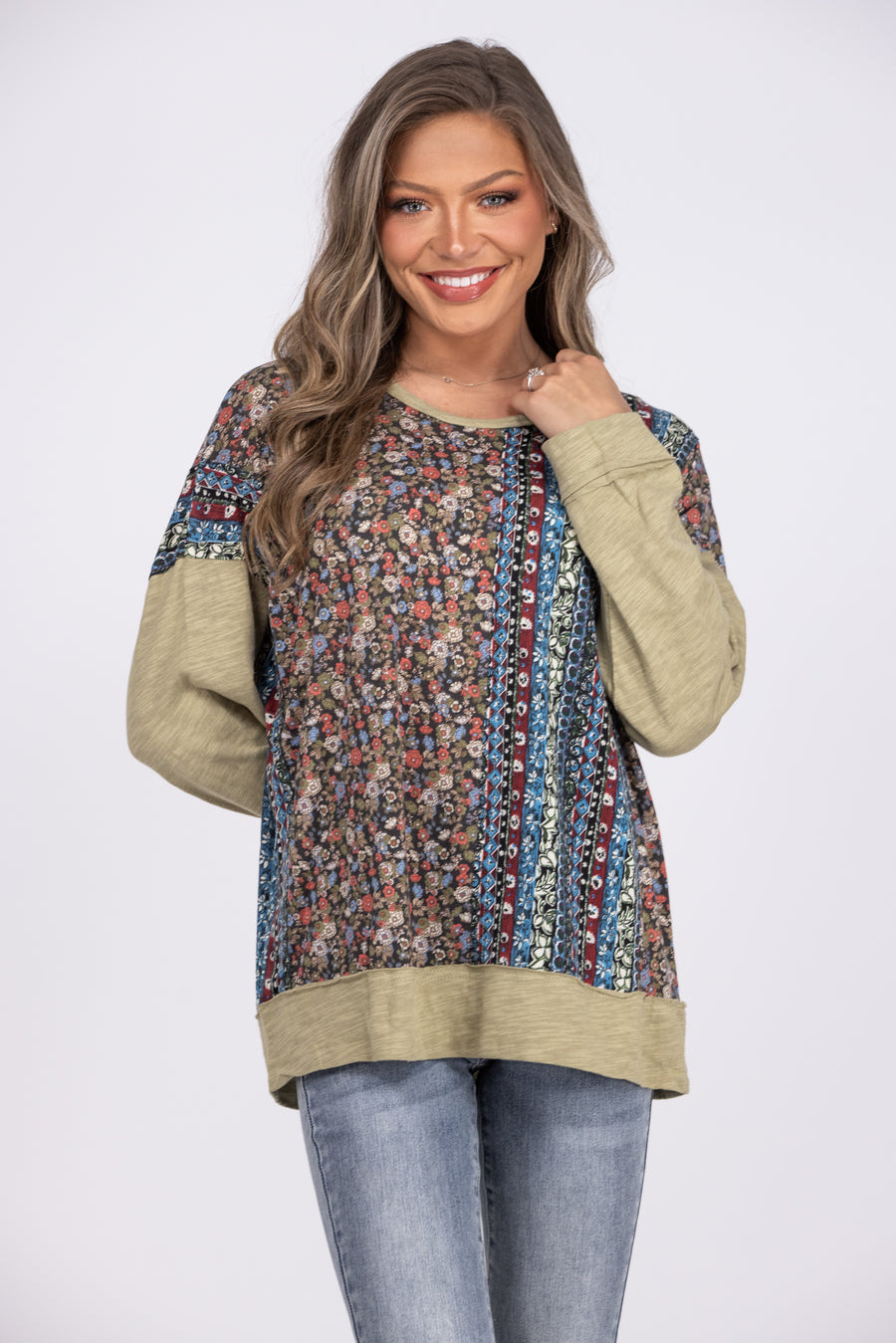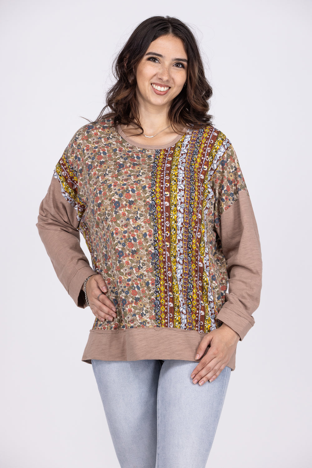 The Only Friend Women's Boho Multi Print Long Sleeve Top *Final Sale*