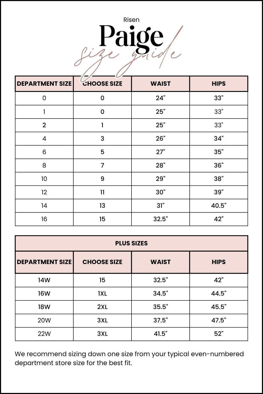 - Rise (Sizes 1XL-3XL): 13 inches
