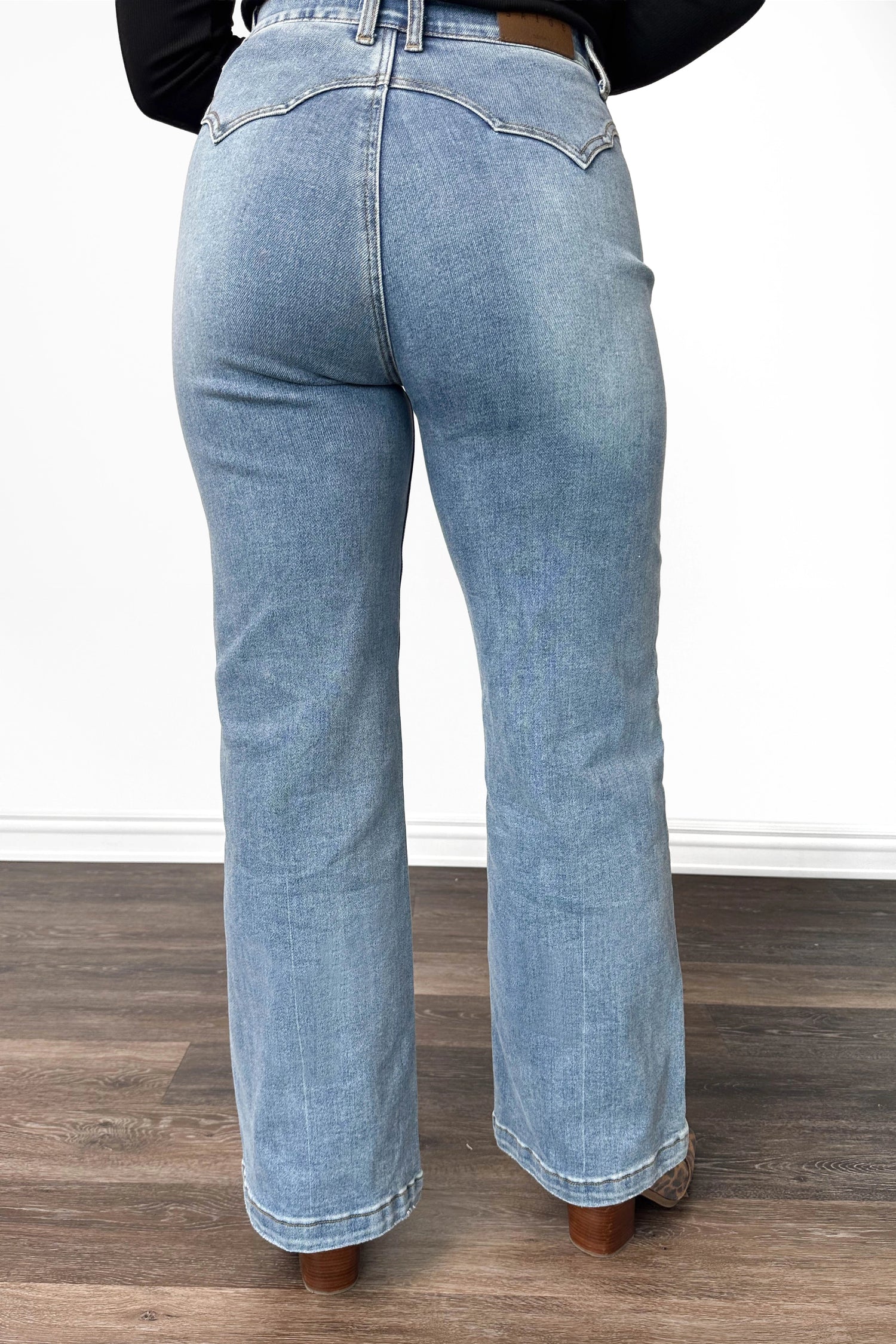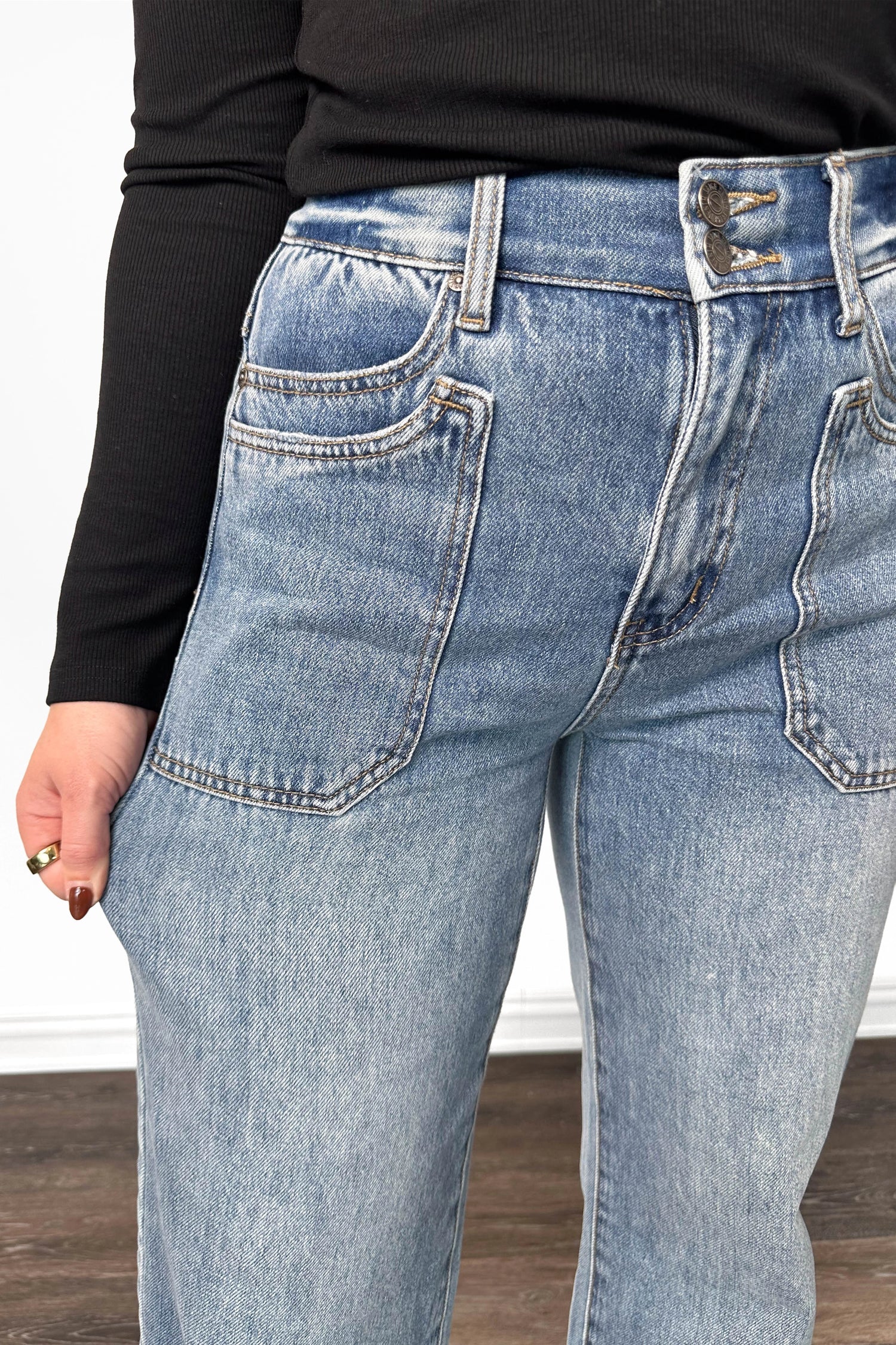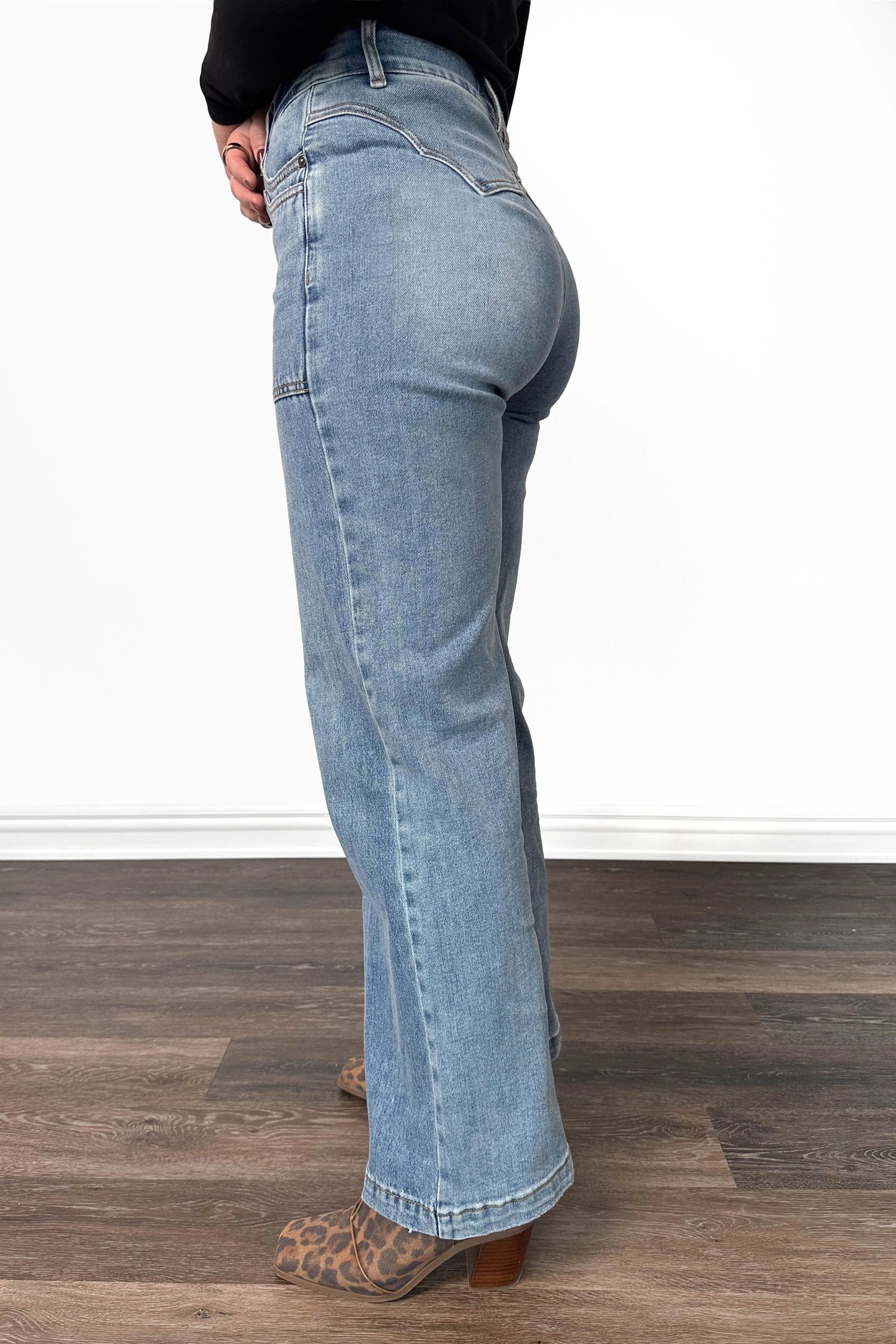 The Scout from Saige: High-Rise Tummy Control Double Pocket Wide Leg Denim