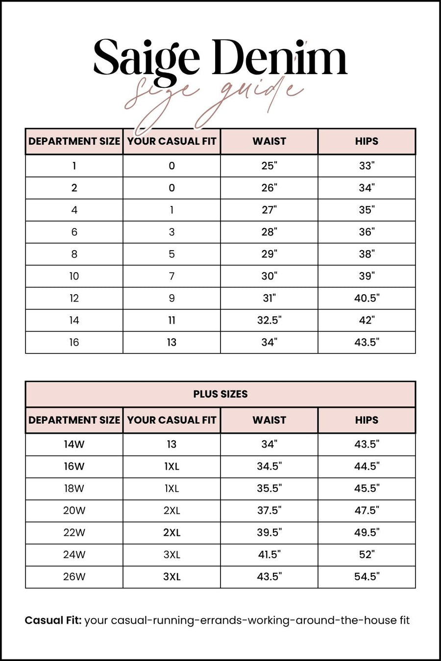 We recommend sizing down two sizes from your typical even-numbered department store size.