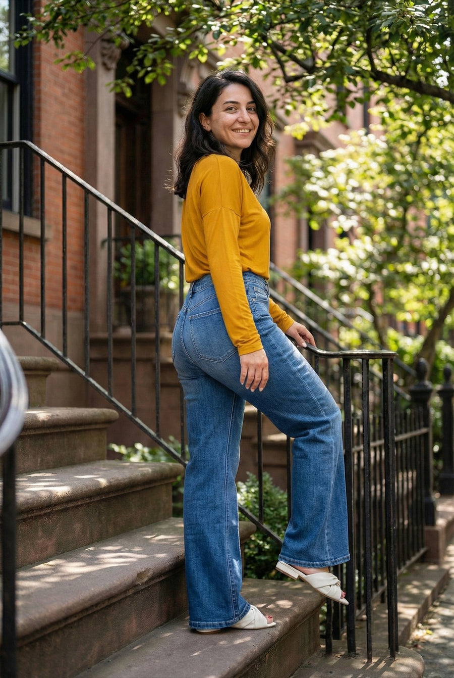 Looks like: Balanced wide leg jeans that actually fit your height.