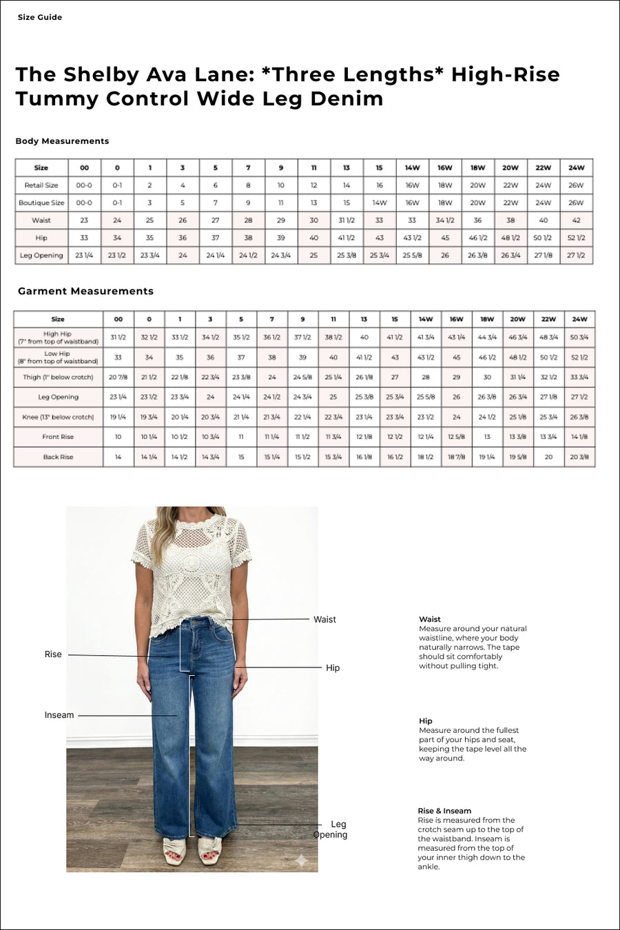 The Shelby by Ava Lane High-Rise Wide Leg Tummy Control Denim Three Lengths