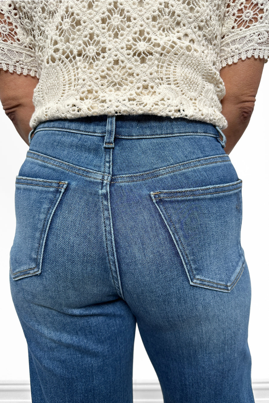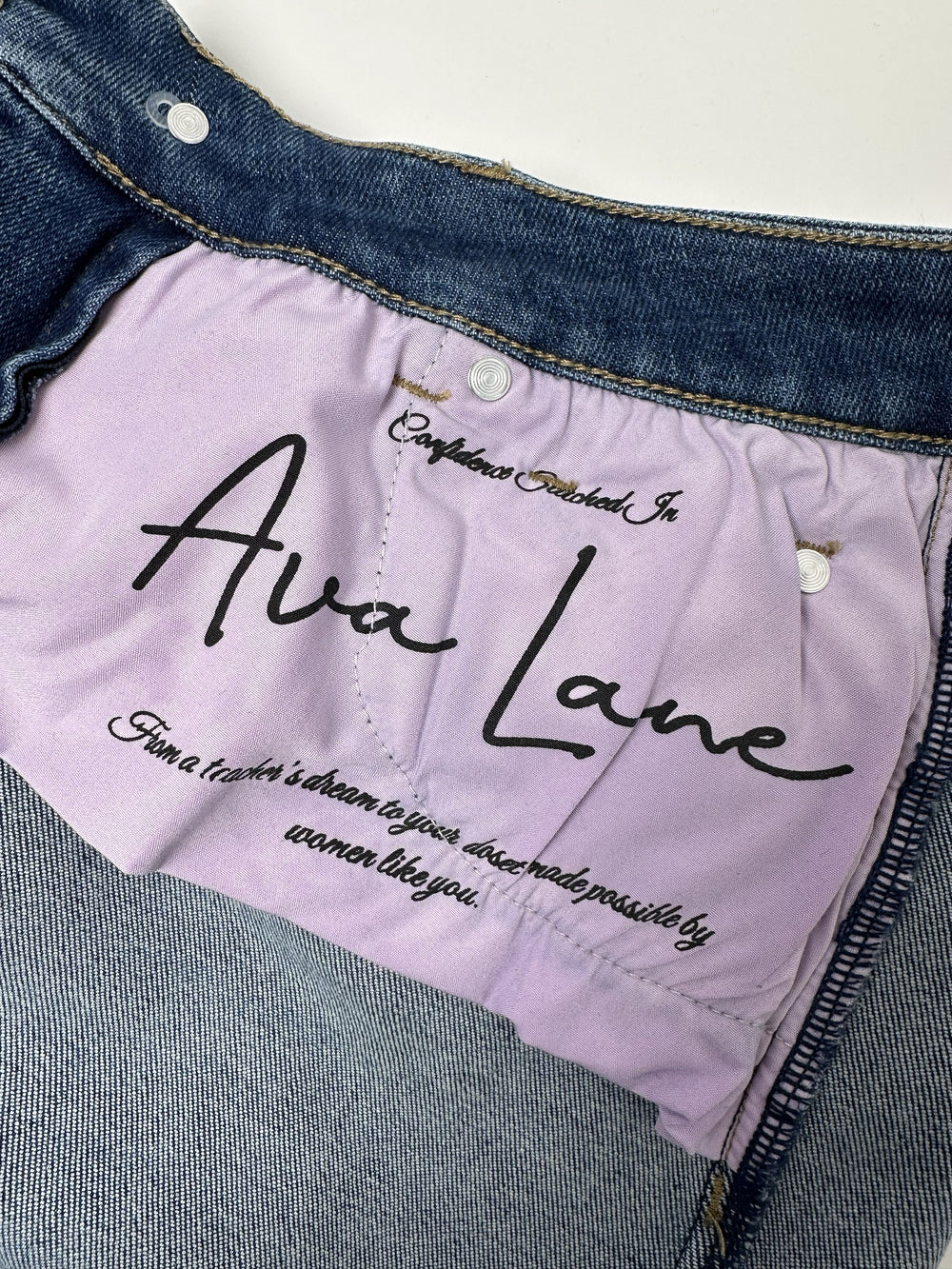 Ava Lane denim is designed with intention. Every pair features our signature hip-to-hip tummy control panel, thoughtfully engineered to provide smoothing support without sacrificing comfort. We use premium stretch denim designed for comfort and movement while holding its shape wear after wear.