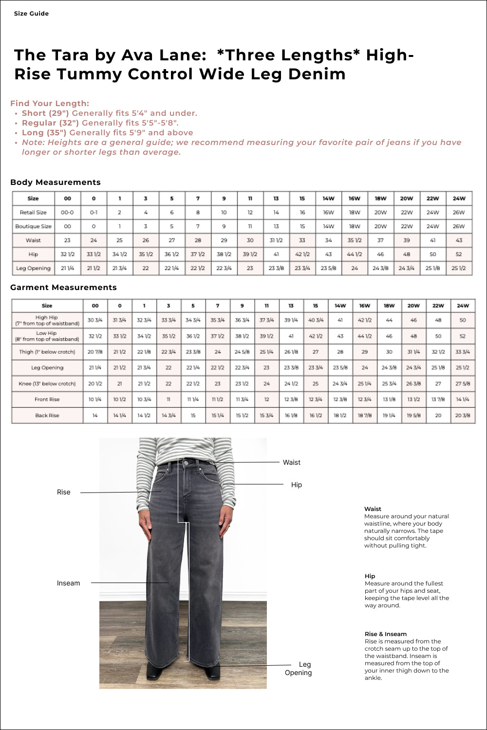 The Tara High-Rise Tummy Control Charcoal Wide Leg Jeans in Three Lengths