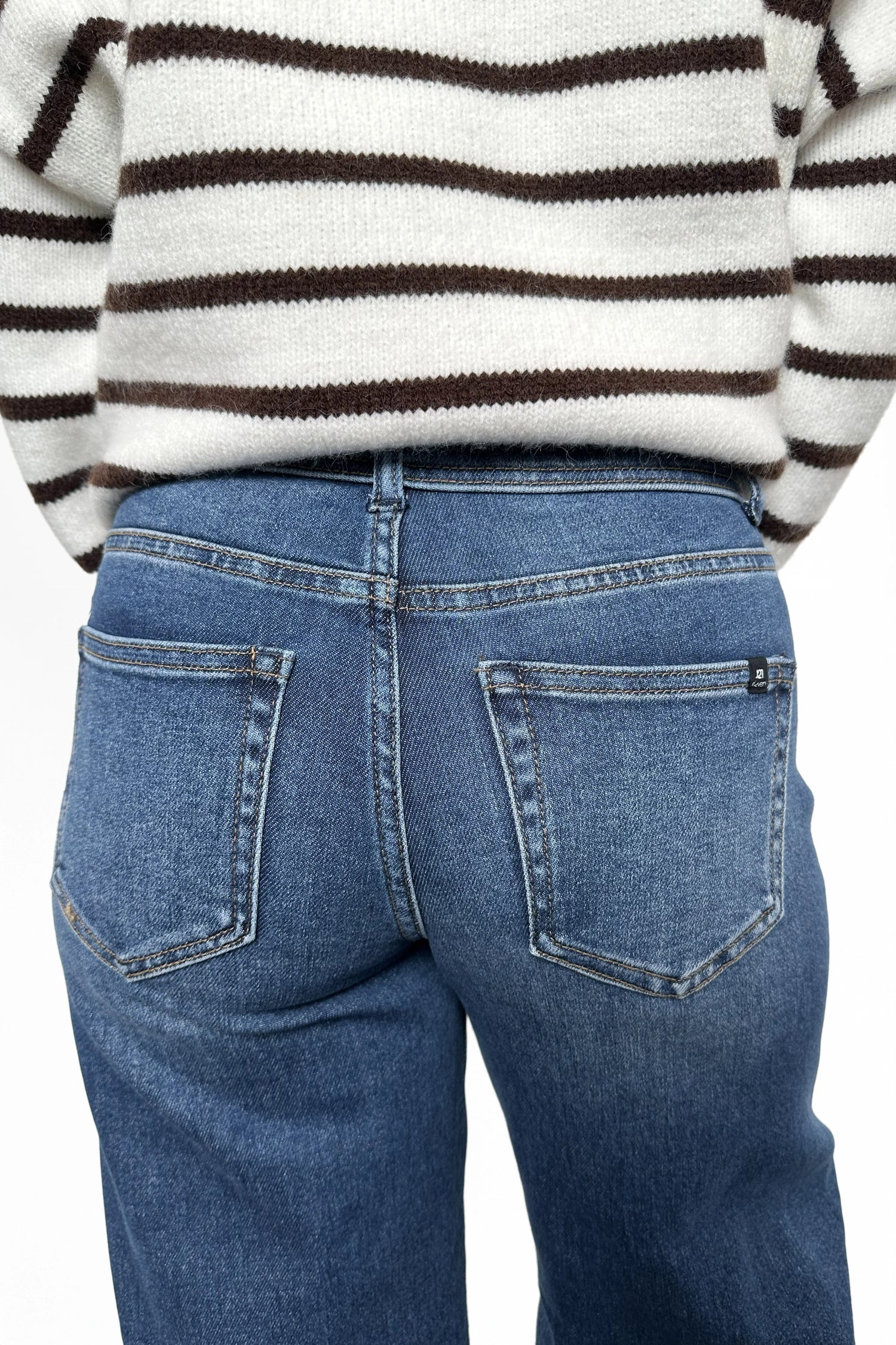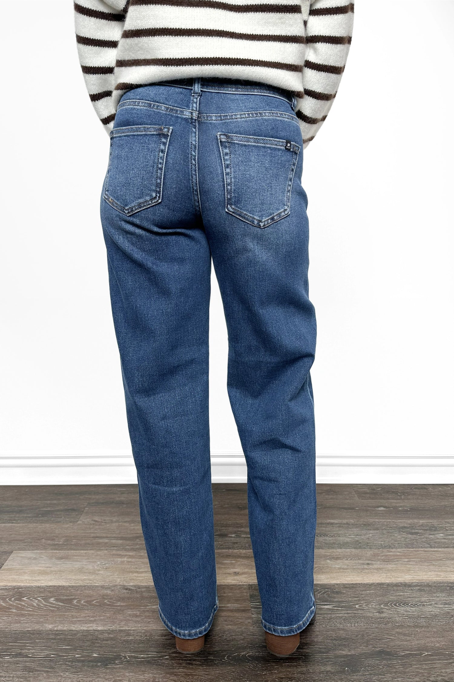 - Distressing Details: Dark wash and non-distressed with slight whiskering for a modern take on classic denim.