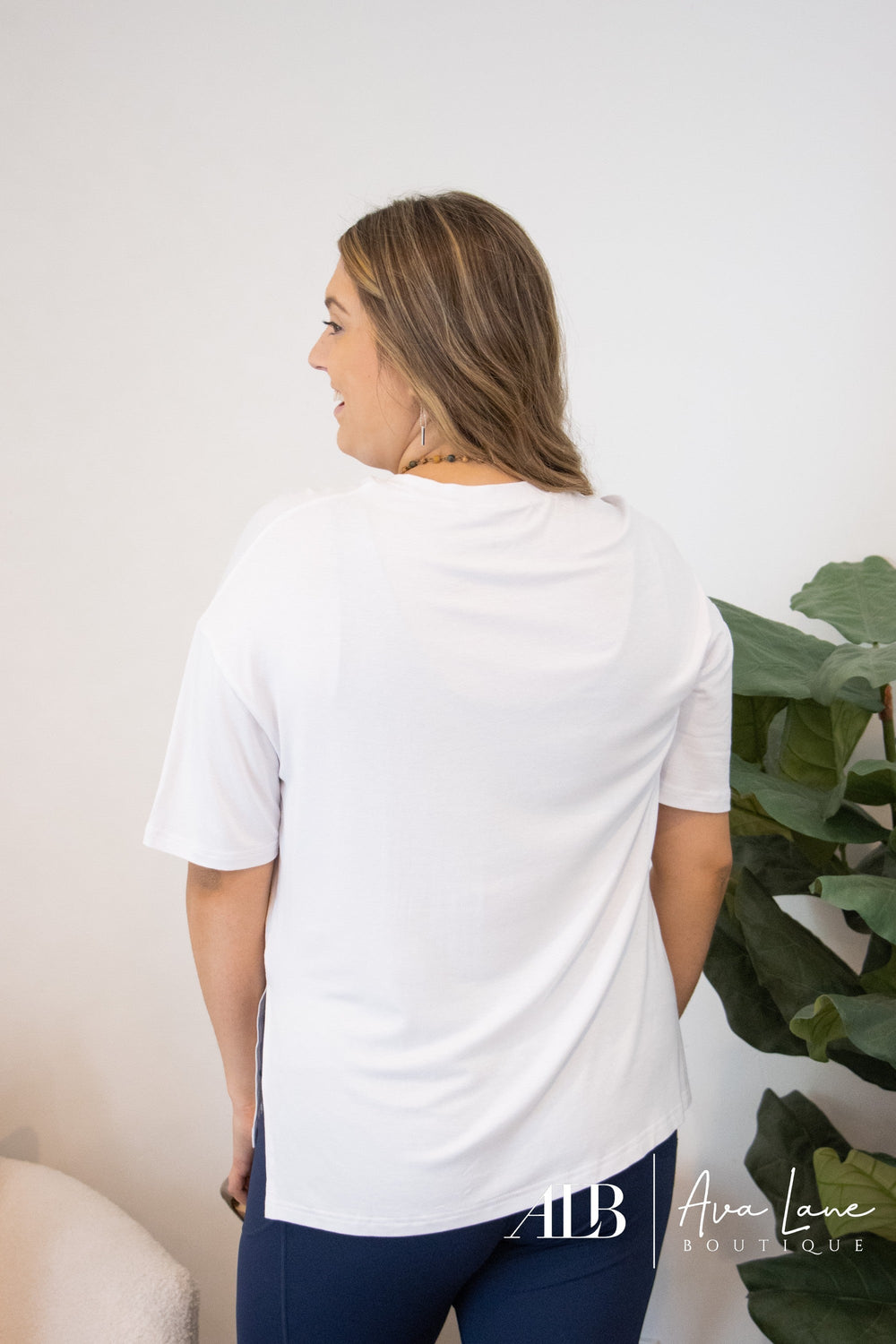 The Things I Thought I Knew Top by Errday is a classic top that can easily go with any outfit! It features a round neckline, short sleeves, and a straight hemline. The long side slits means this top will lay flat whether you are running or just going grocery shopping! You can never have enough of this kind of closet staple, grab them while you can!