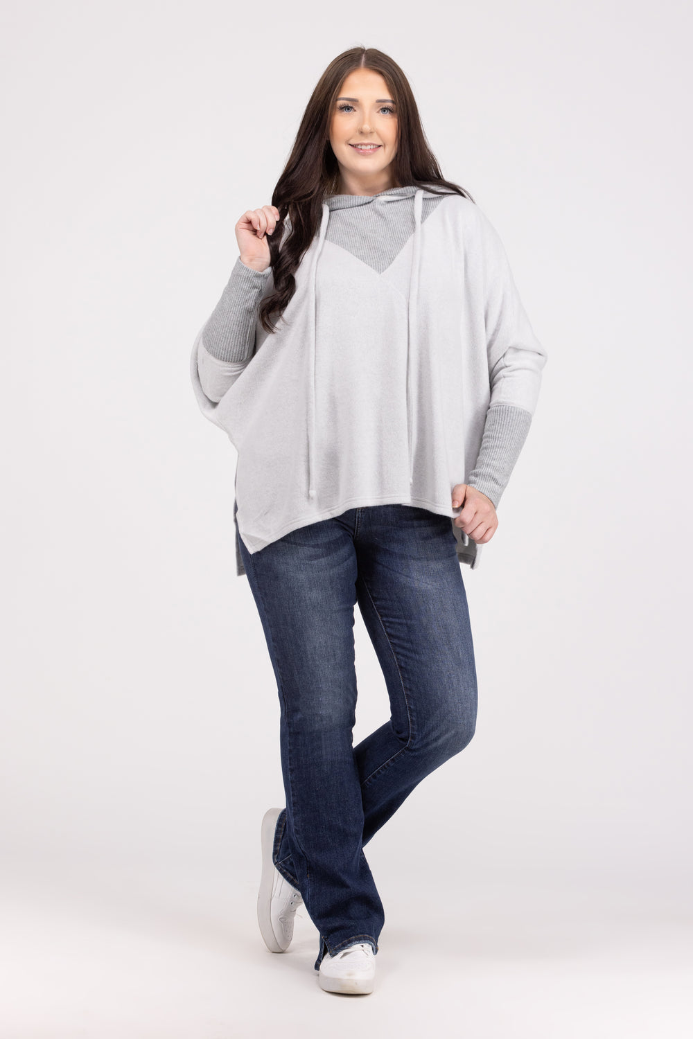 Time For Two Women's Loose Two Tone Hi-Lo Hoodie