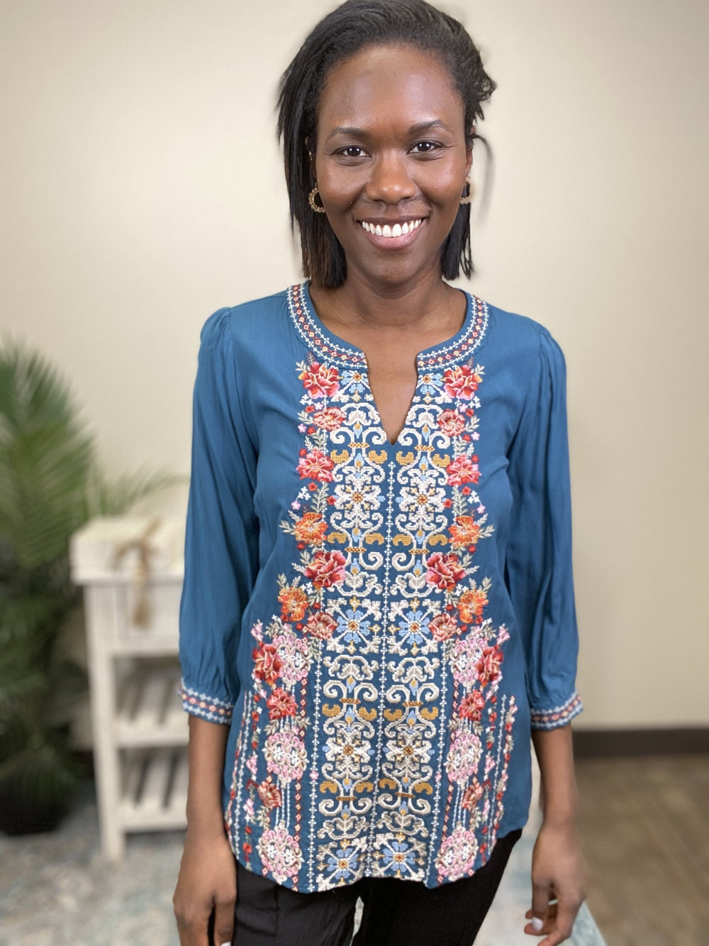 To Be In Love Women's Embroidered 3/4 Sleeve Top *Final Sale*