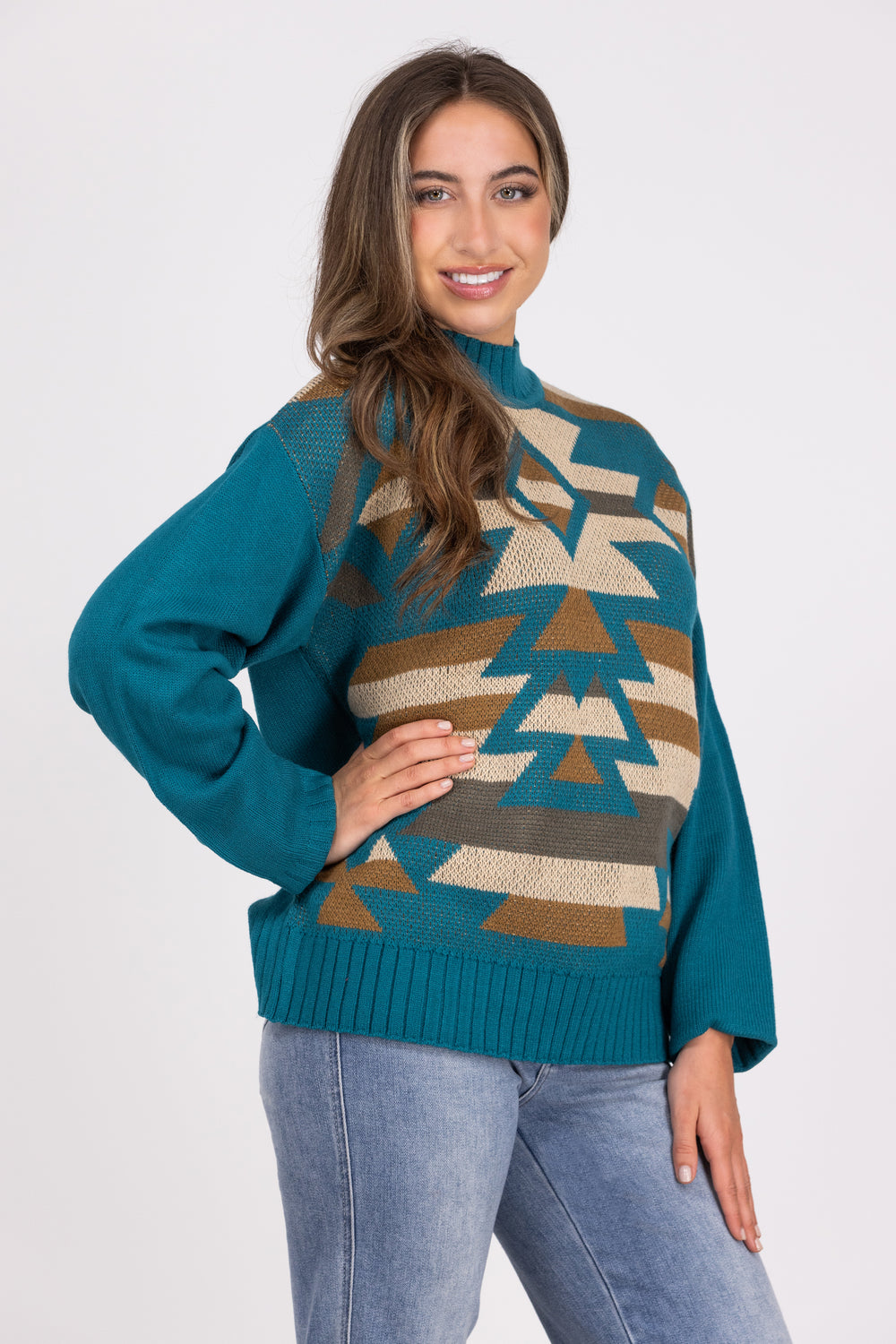 Climb higher than anyone else with the To the Mountain's Peak Sweater from Andree by Unit! This sweater features long sleeves, a mock neckline, and multi-color patterns. Pair with your favorite denim and ascend to new heights!
