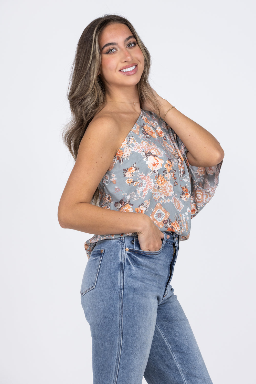 To The Sun Women's Floral One Shoulder Top