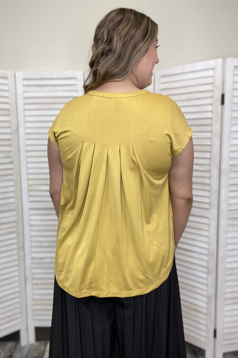 The Too Fun Top by Doe & Rae is a casual, classic top that you can pair with just about anything! It features a round neckline with a V-cut, short sleeves, round hemline, and pleating on the front and back! This top is perfect underneath cardigans or kimonos!