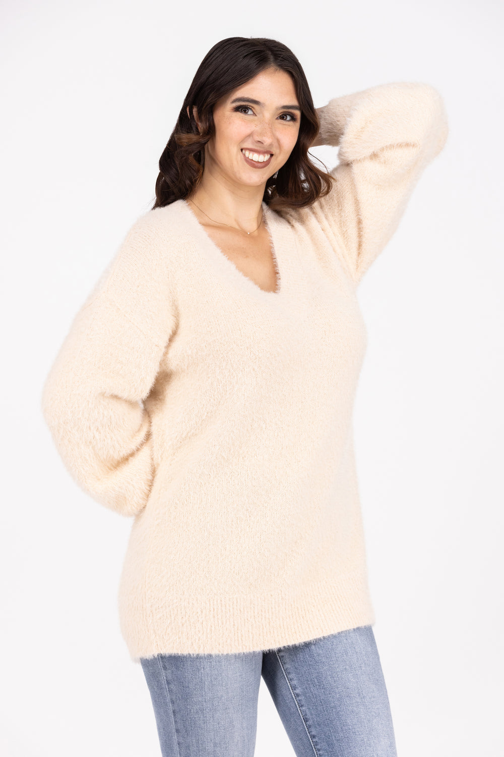 Show off your striking fashion choice and slip into The Total Show Off Sweater from Andree by Unit. Made to keep you feeling warm and looking sophisticated, it's a beautiful piece that's adorned with a V neckline and long sleeves. We love the fit on this sweater, it's so cute and trendy. The flattering bodice is best paired with high-waisted denim and cozy boots.