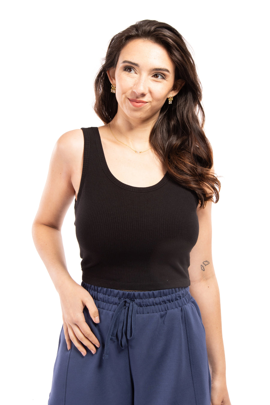 The Tree Pose Yoga Bralette by White Birch will have you striking a pose! It features a rounded neckline, ribbed fabric, shelf bra with removable pads, and a straight hemline. Pair the Tree Pose Yoga Bralette with your favorite leggings for a fun athletic look.