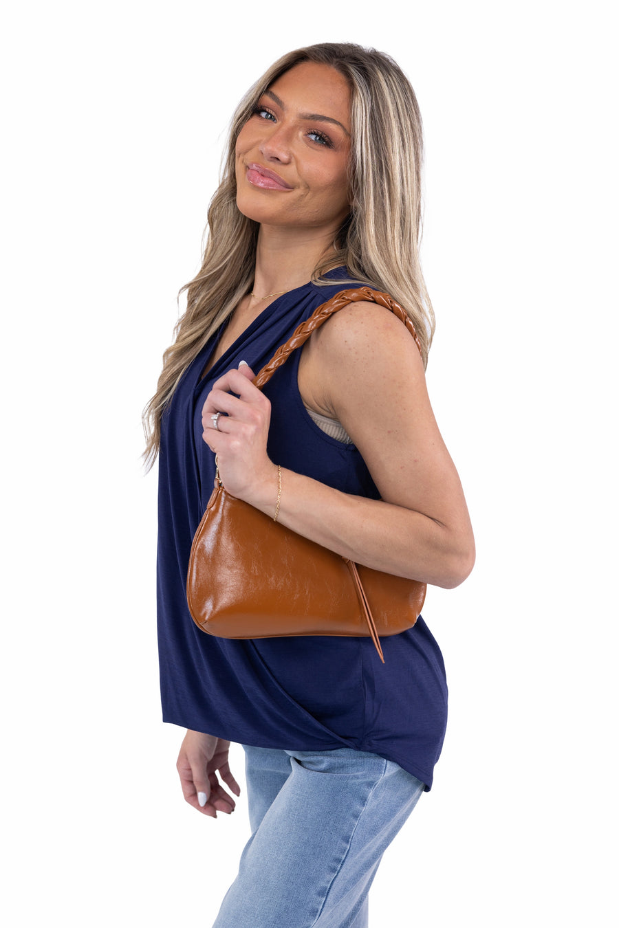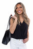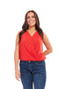 Elevate Your wardrobe with this trendy top from Dear Scarlett. This new travel design blends comfort and elegance, featuring a V Neckline, crossover front, hi low rounded hemline. The Bulgari fabric adds a touch of sophistication, while the back pleat creates a flattering, structured look. This top is ideal for layering or wearing as a stand alone piece and provides a versatile option for casual outings or semi-formal events.