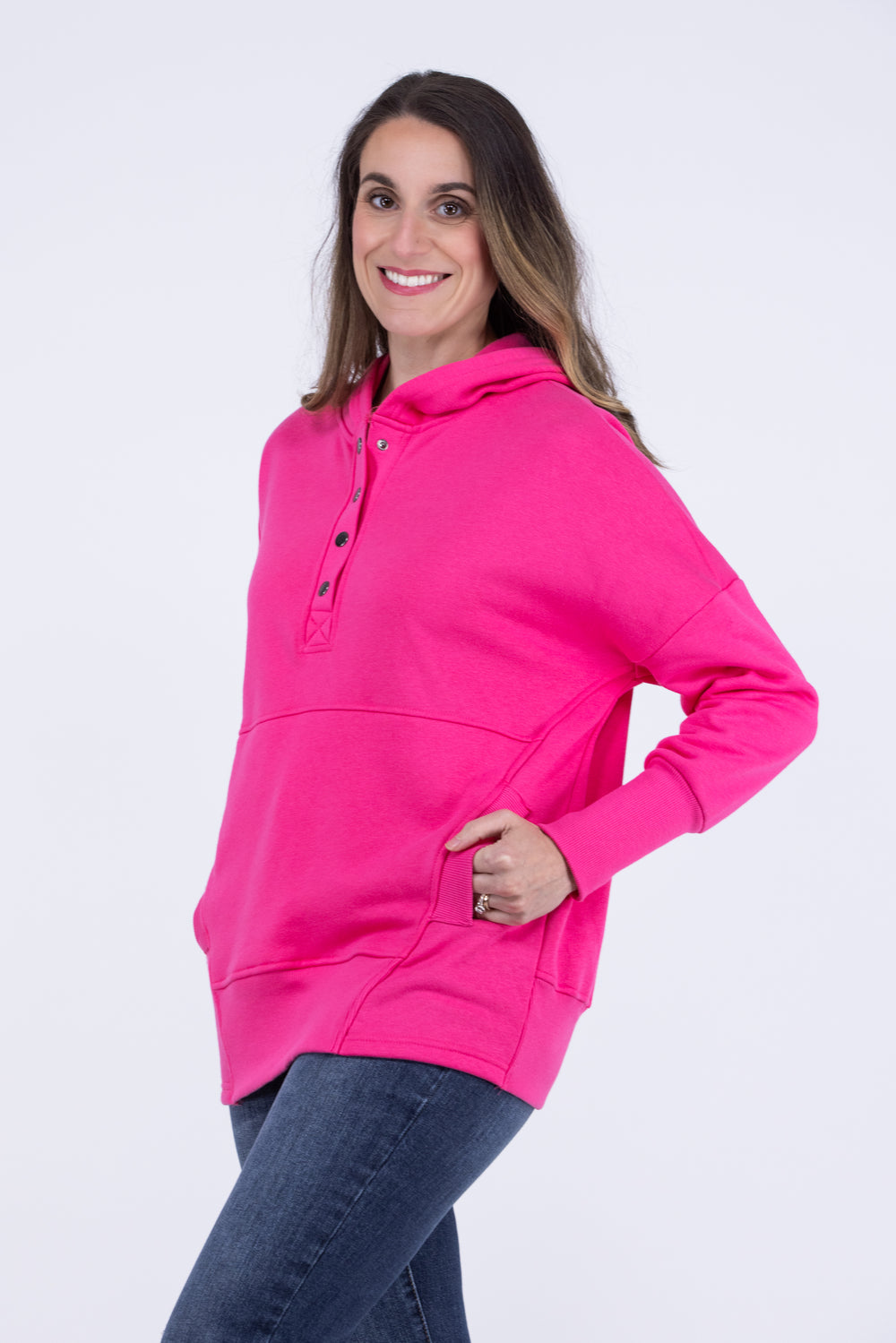 Upbeat Energy Women's Tailored Half Button Pullover Hoodie *Final Sale*