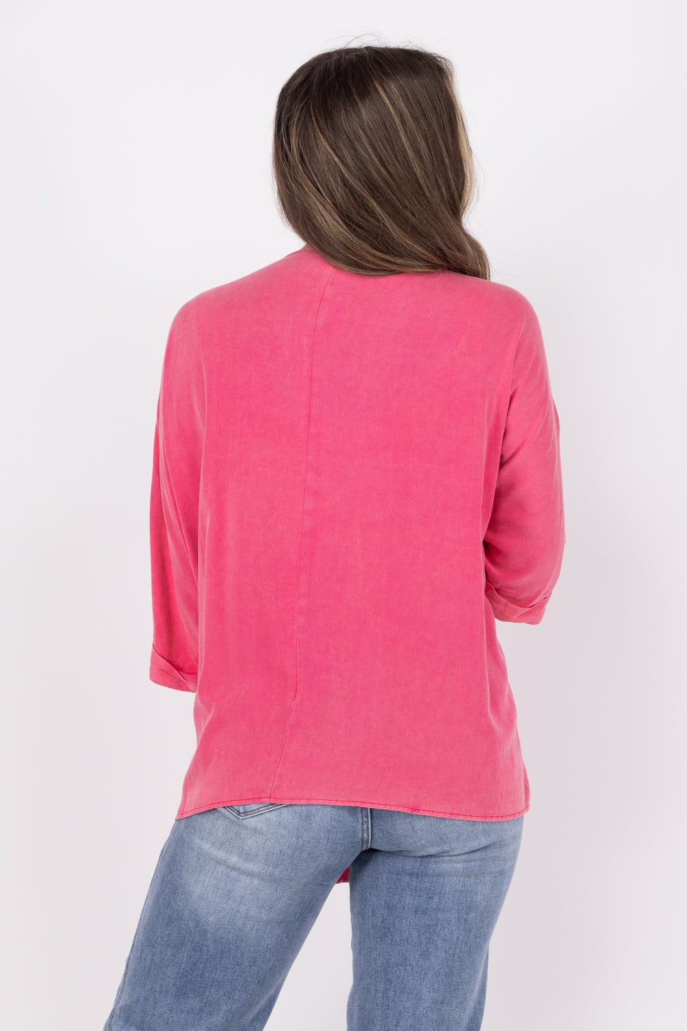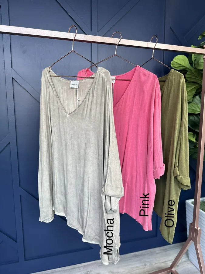 The Utmost Comfort Top from Andree by Unit is the comfy essential we've been dreaming of. It features a V neckline, mineral washed fabric, oversized easy to style and straight hemline, the oversized bodice is framed with short cuffed dolman style sleeves for a classic look. It's a versatile and timeless piece that can be styled with high-waisted bottoms or leggings and sneakers for a more laid back look.