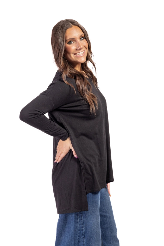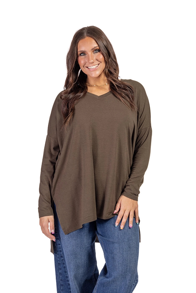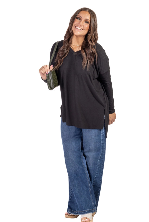 This V-Neck Layering Tunic Top by Zenana is the perfect staple piece for every closet. Get one in every color to coordinate with many items already in your closet. Whether you dress up or dress down this tunic will keep you comfy all day long. In addition, this top features long sleeves, a square hi-low hemline with side slits for a slimming appearance.