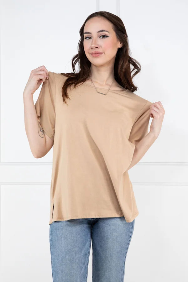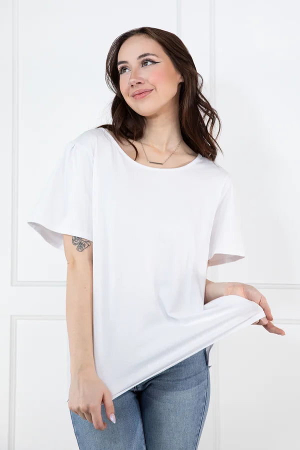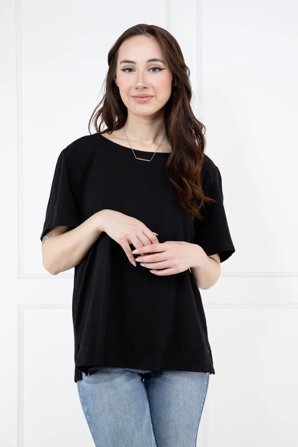 The Vital Top by Sew In Love will be a staple in your wardrobe this season! A great feature of this tee is the comfortable round neckline that is very flattering. The Vital Tee also adds a bit of flare with it's slits on either sides of the bottom hem and ruched detailing on the shoulders. Pair with any denim for a classic yet elevated look!