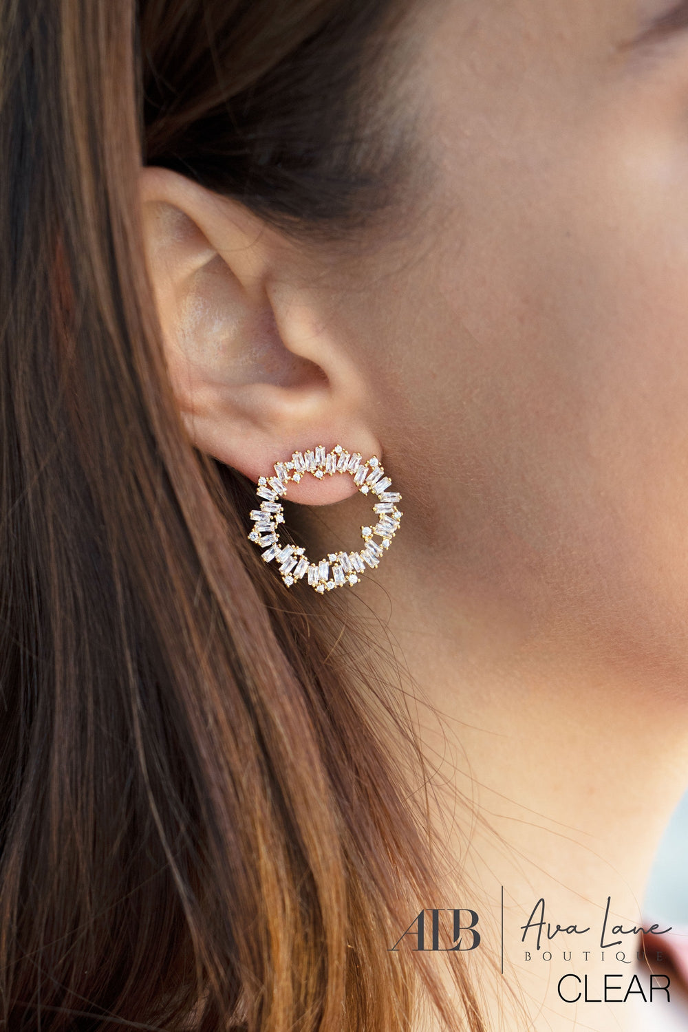 The Vivian Earrings by Linny Co are a beautiful study in crystal! These circle earrings are made up of baguettes placed in a circle and a stud backing. Add glitter and shine to any outfit! Especially those dressed up nights out!