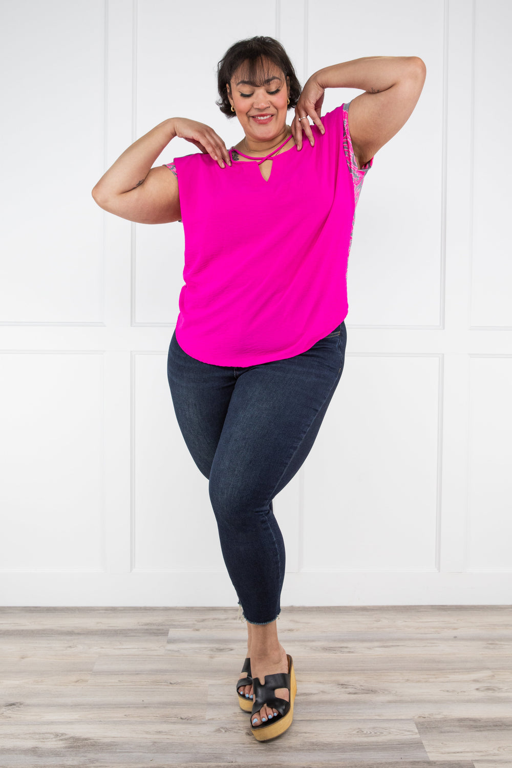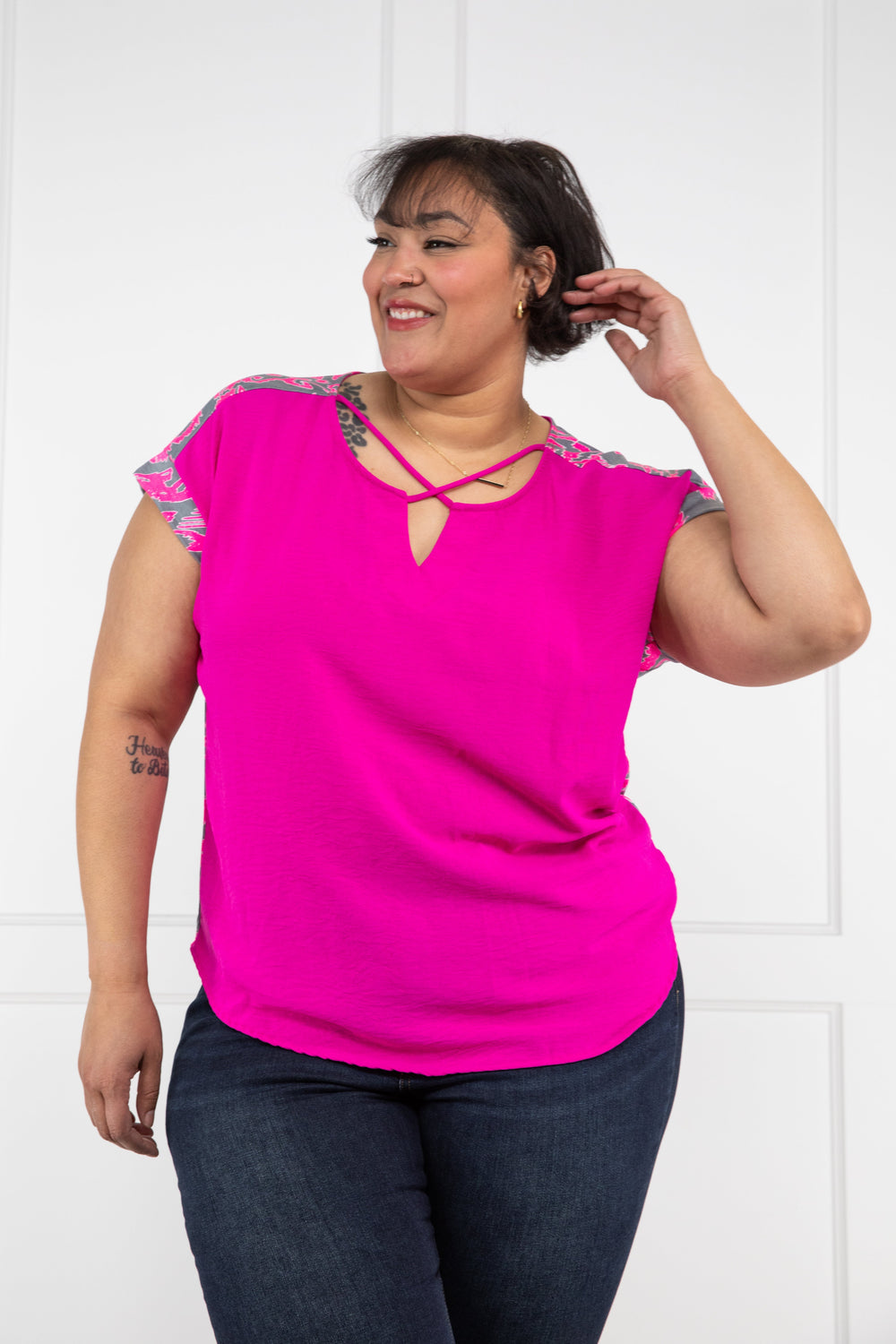 You'll always be loved in the Want To Be Loved Top from White Birch! This top features a rounded neckline with a V cutout, criss cross detail, cap sleeve, and rounded hi-lo hemline. Pair with dark skinny denim and flats for the perfect summer date night!