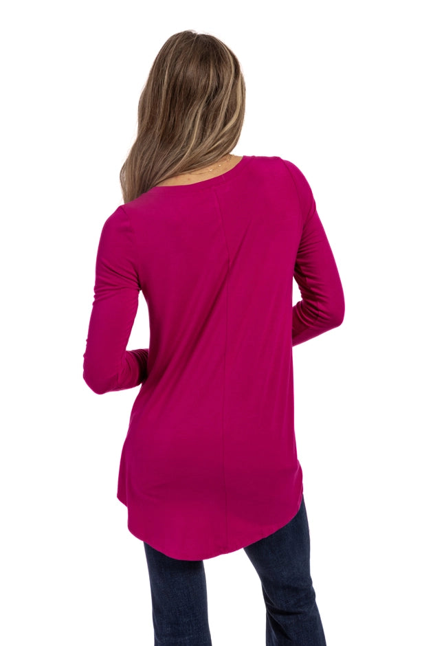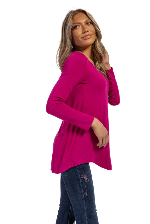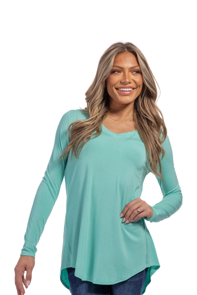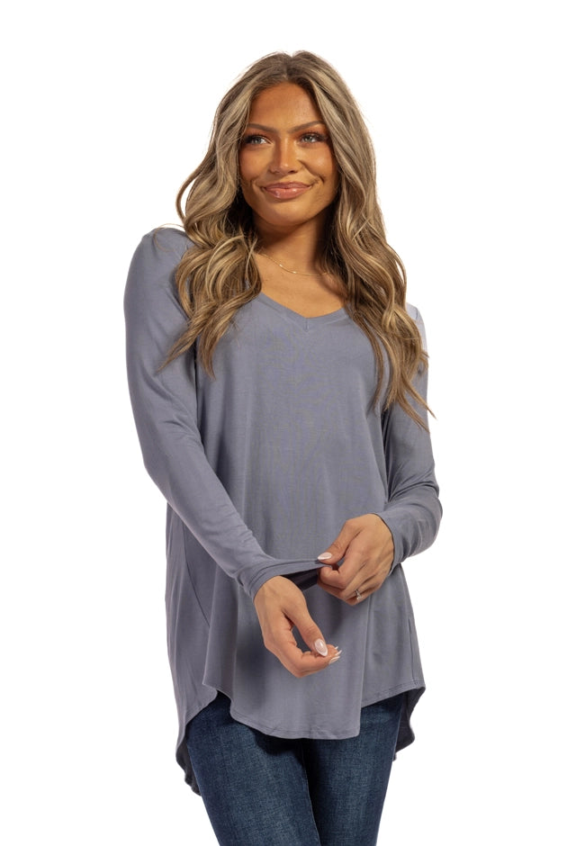 Hello Comfort! The Classic Hi-Lo Long Sleeve Top by Zenana is the best top for all your everyday needs! This classic long sleeve top features a V-neckline, long sleeves, and a rounded hi-lo hemline. It's so soft and can pair with anything in your closet!