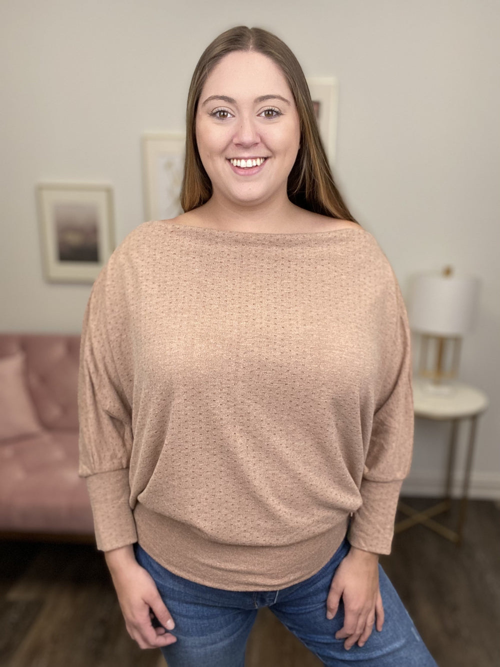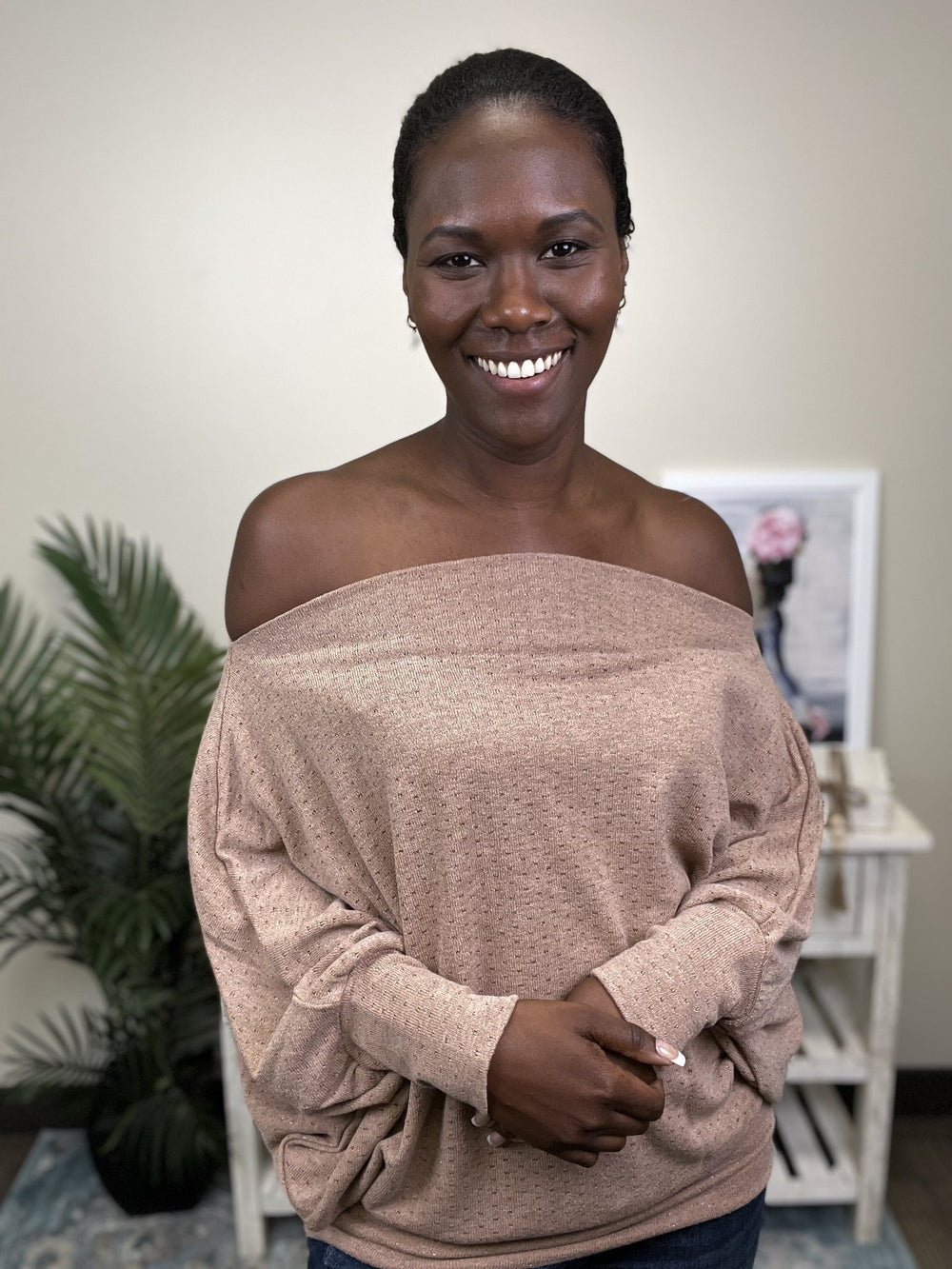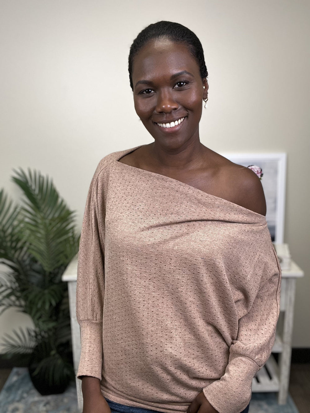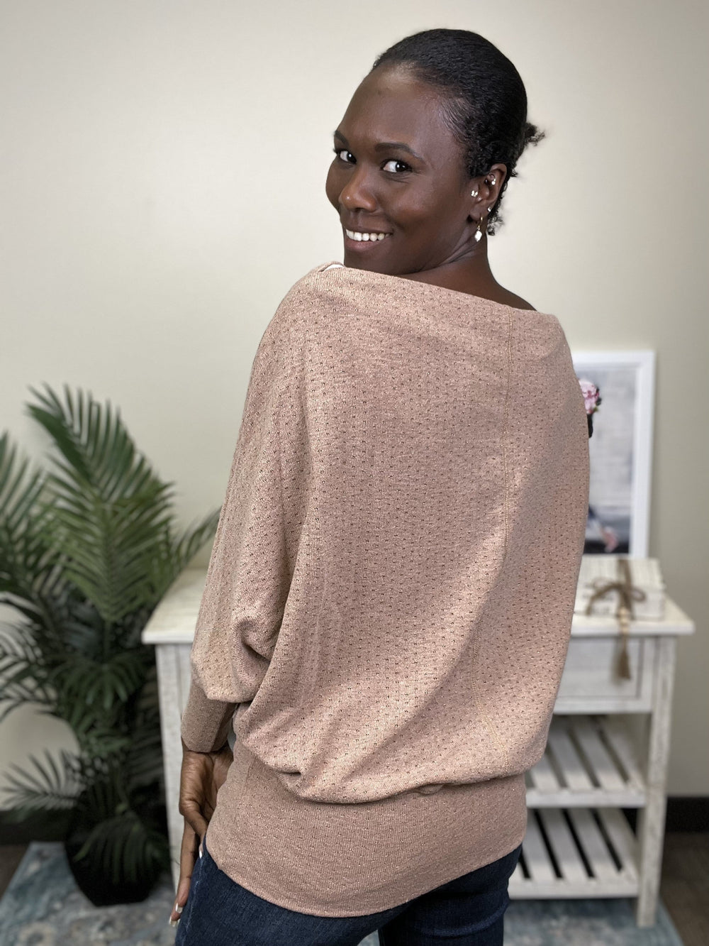 The What's The Occasion Top by Easel is the perfect top for going out with your friends or significant other. This top features a boat neckline, tapered hemline, sparkle detailing and dolman sleeves. The What's The Occasion Top can be paired with your favorite dress pants or denim.