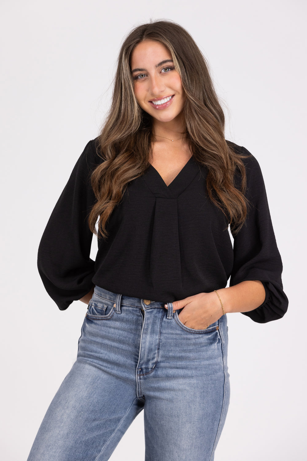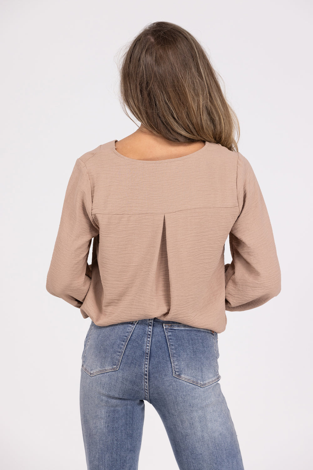 Wearing the Where Two Paths Meet Long Sleeve Top by White Birch is like meeting a lifelong friend for the very first time. This top features a banded V-neck, long sleeves, and pleated detail in the back. Pair with your favorite denim and watch two paths become one!