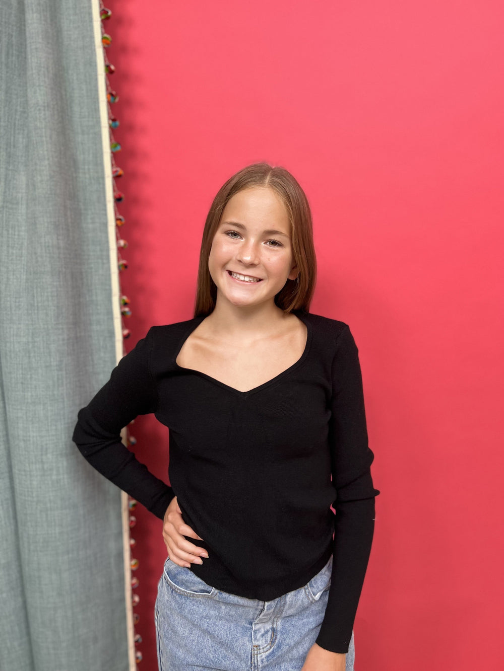 The Will I Be The One Sweater from Listicle is a slim fit, long sleeved sweater that features a V-neck, raw hem, and stretchy ribbed fabric. Perfect for layering under an oversized tee or wear on its own!