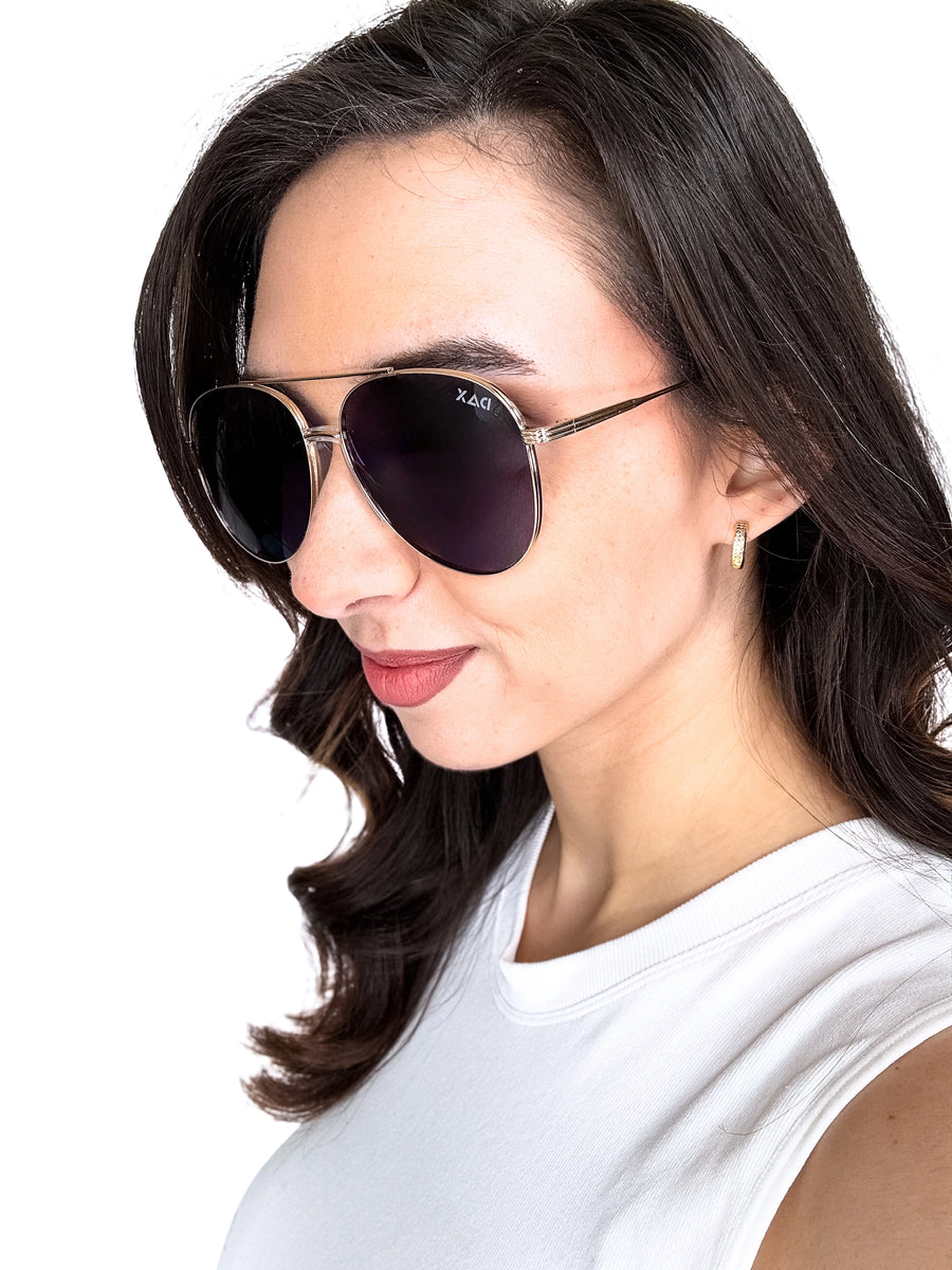 Look stylish in these ultra lightweight aviators featuring built in nose pieces, so they will not get stuck in your hair, and a UV protection coating on the lenses! Includes a storage pouch and cleaning wipe.