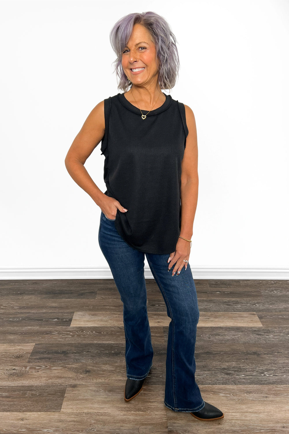 This Women's Casual Round Neckline Tank Top from Andree by Unit is the foundation piece every wardrobe craves. The relaxed fit waffle knit skims your frame while providing real coverage, and sturdy stitching at the neckline and sleeves means it'll stick around for the long haul. Layer it under your favorite blazer for instant polish, or let it shine on its own for effortless cool. With multiple colors waiting to join your collection, grab your favorites; or go ahead and get them all!