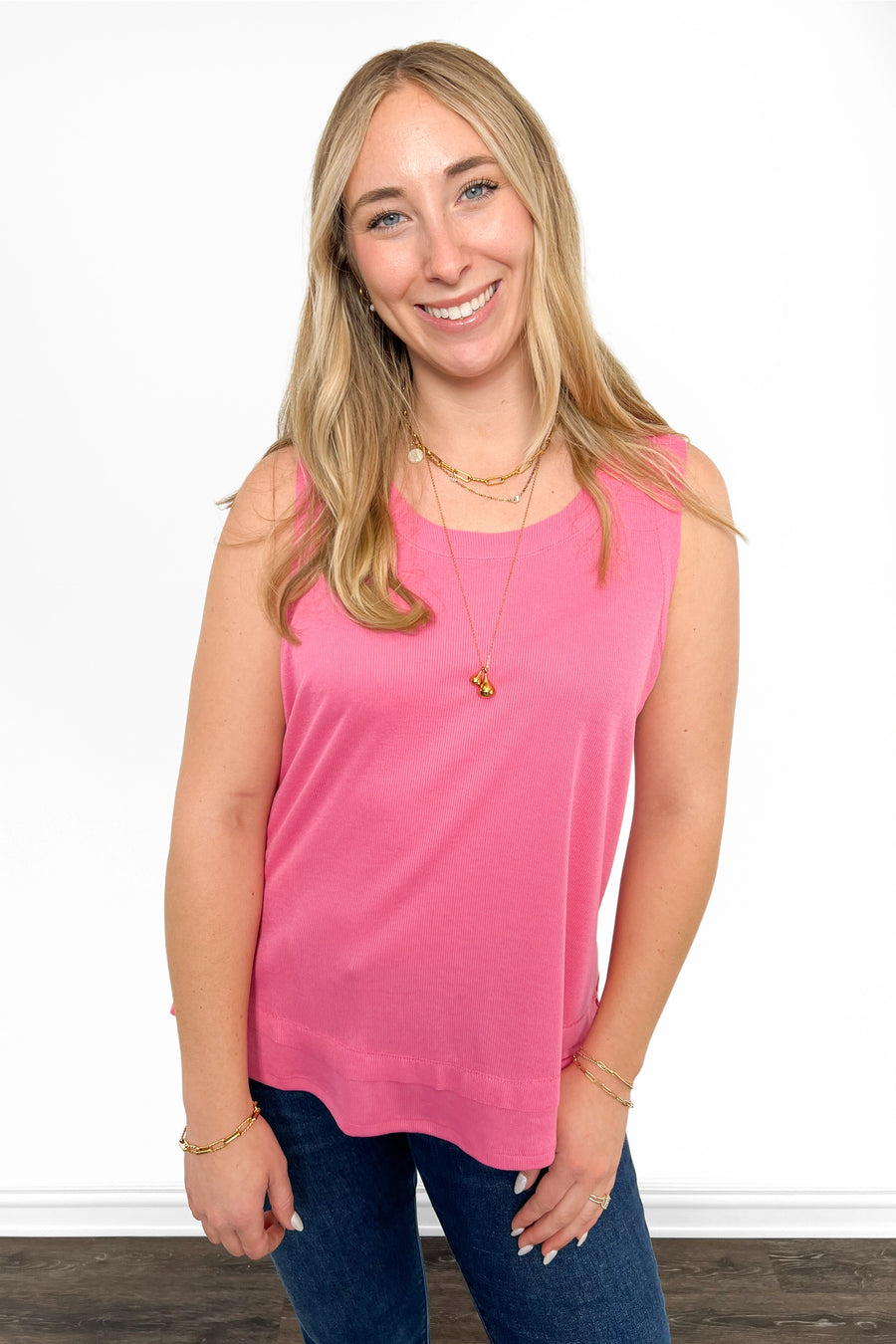 Introducing the Women's Classic Ribbed Feminine Tank Top by Andree by Unit. A refined essential that seamlessly transitions from boardroom to evening. With an double raw edge detail along the arm holes and waist for a unique look. Pair it with a tailored blazer for effortless sophistication or showcase it with bold jewelry for an elevated standalone look. For the woman who values quality and timeless style, this tank is the classic piece every closet deserves.