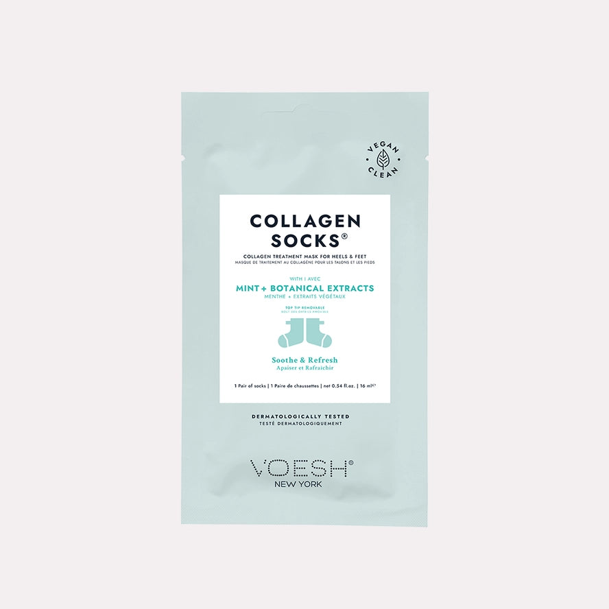 Slip into luxury with our Women's Collagen Socks from Voesh New York; the ultimate pampering essential that works while you relax. Featuring innovative removable toe tips, you can enjoy a fresh pedicure without interrupting your self-care routine. Choose your vibe: Argan Oil infused with floral extracts to nourish and revitalize tired feet, cooling Mint blended with botanical extracts for soothing relief, or indulgent Imperial Gold to calm and hydrate. Can't decide? Grab all three and rotate your way to softer, more radiant skin.