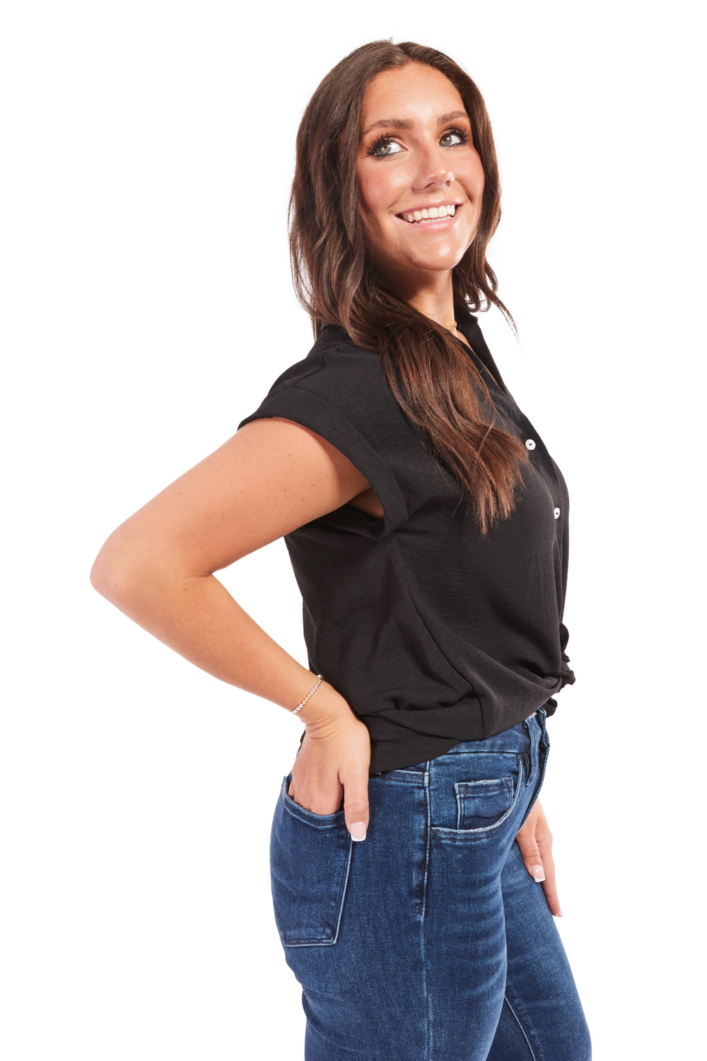 Upgrade your wardrobe with this lightweight and stylish Collared Button Up Short Sleeve Shirt from Andree By Unit! Perfect for any occasion, the short sleeves and collared neckline offer both comfort and sophistication. The hi-lo hemline, cuffed dolman sleeves, and textured material also add to the versatility of this top. Pair with your favorites shorts to stay cool and trendy!