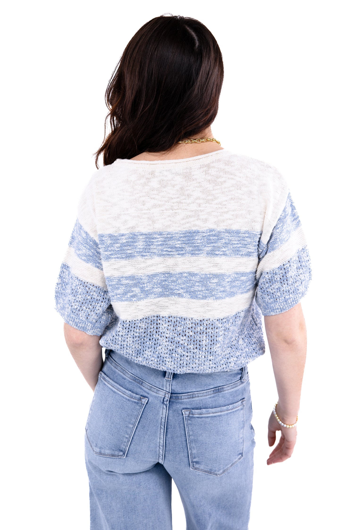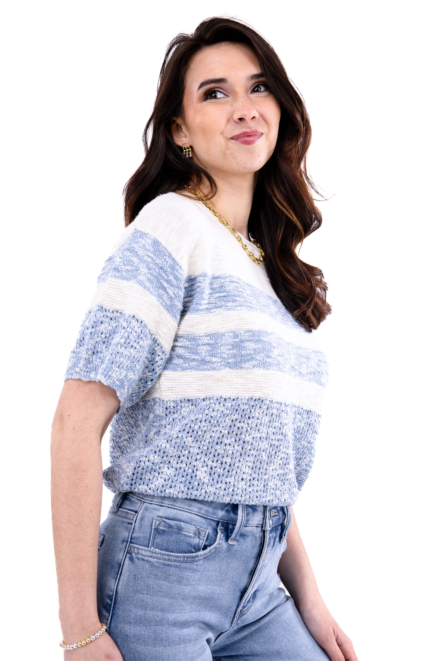 This top is a perfect combination of style and comfort. The color block design adds a pop of fun to any outfit, while the short sleeves make it perfect for warmer weather. Stay cool and fashionable with this must-have top.