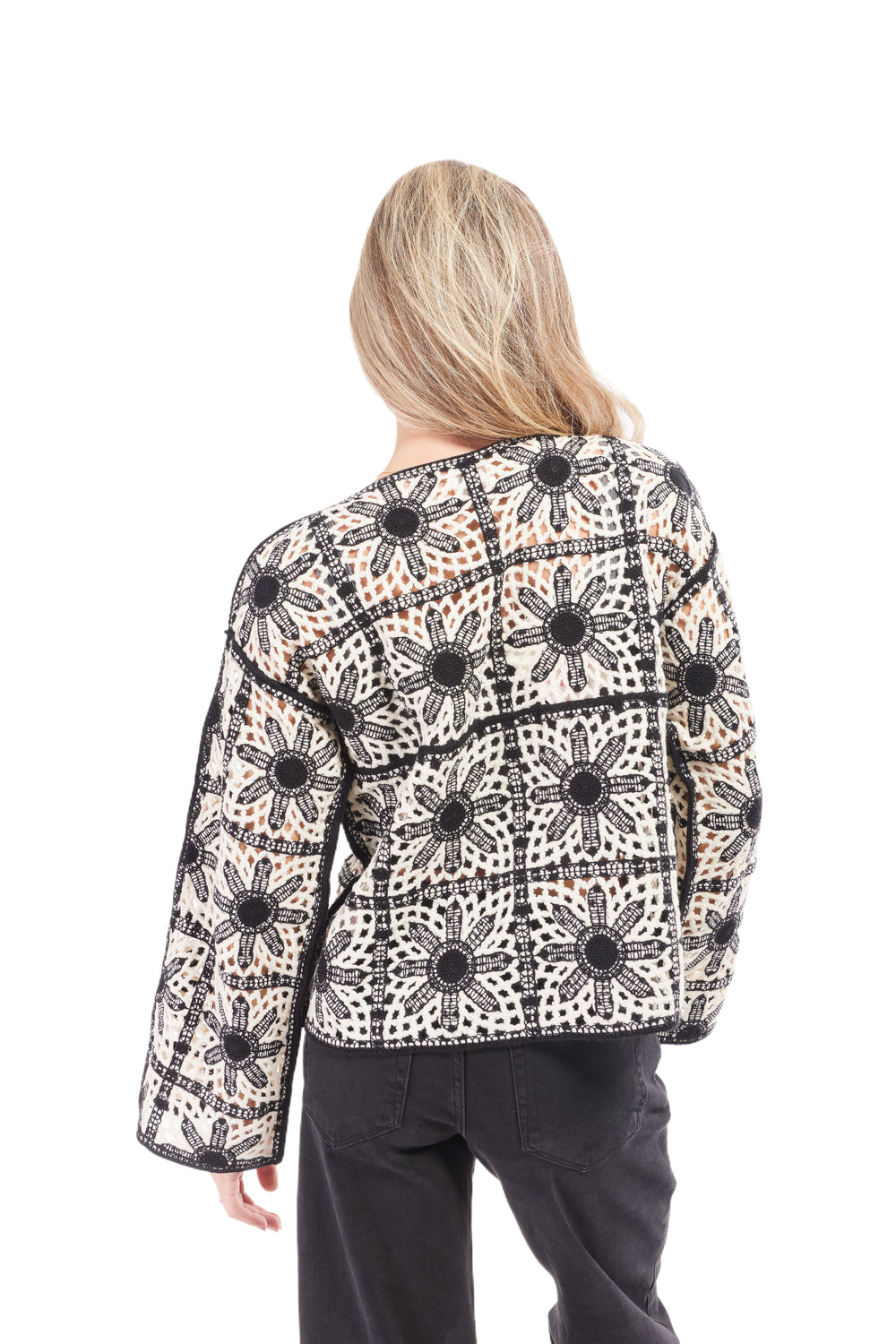 Elevate your wardrobe with our Women's Crochet Knit Long Sleeve Top. This stylish top features a delicate crochet knit design and a flattering jewel neck. Perfect for adding a touch of elegance to any outfit. Stay on trend and make a statement with this must-have piece!